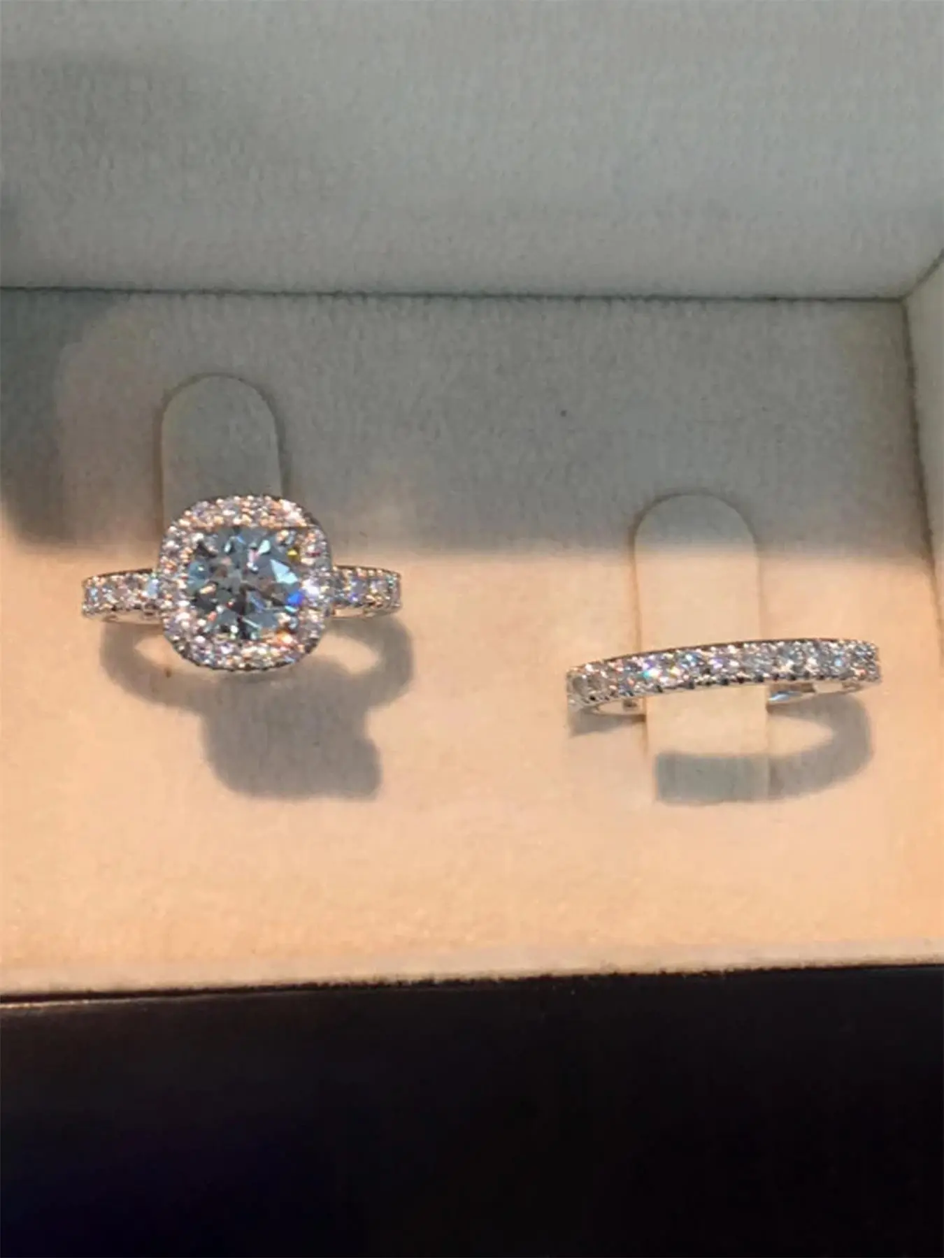 One of the most beautiful things I’ve gotten on TikTok shop! And I paid DOUBLE what y’all can get it for today!  #jewelry #ring #weddingring #ringset #sterlingsilver #tiktokshoploveatfirstfind #spotlightfinds Sterling silver wedding ring set#CapCut