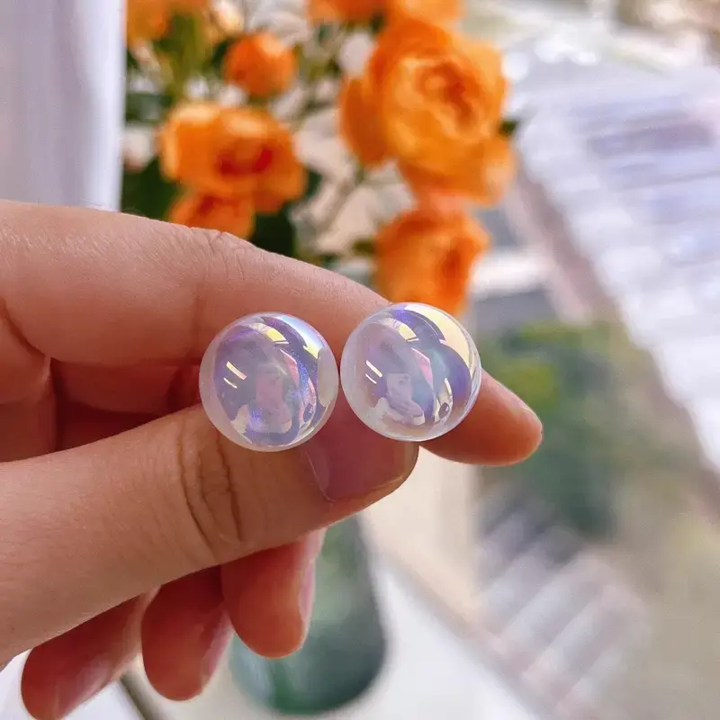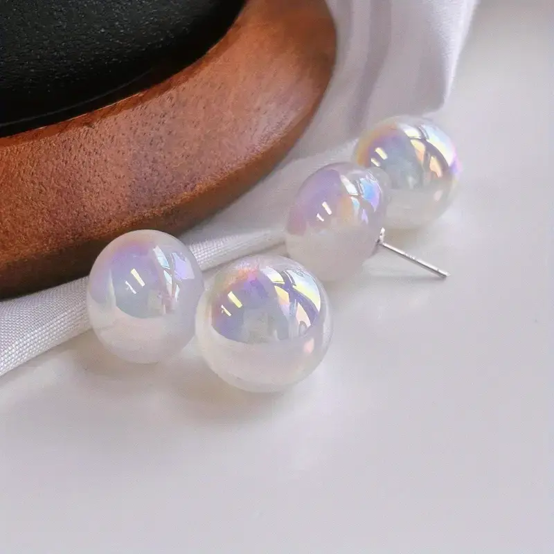 Starry Mabel 0.6" Large Pearl Earrings - S925 Sterling Silvery, Magic Finish, Perfect for Sports Fans