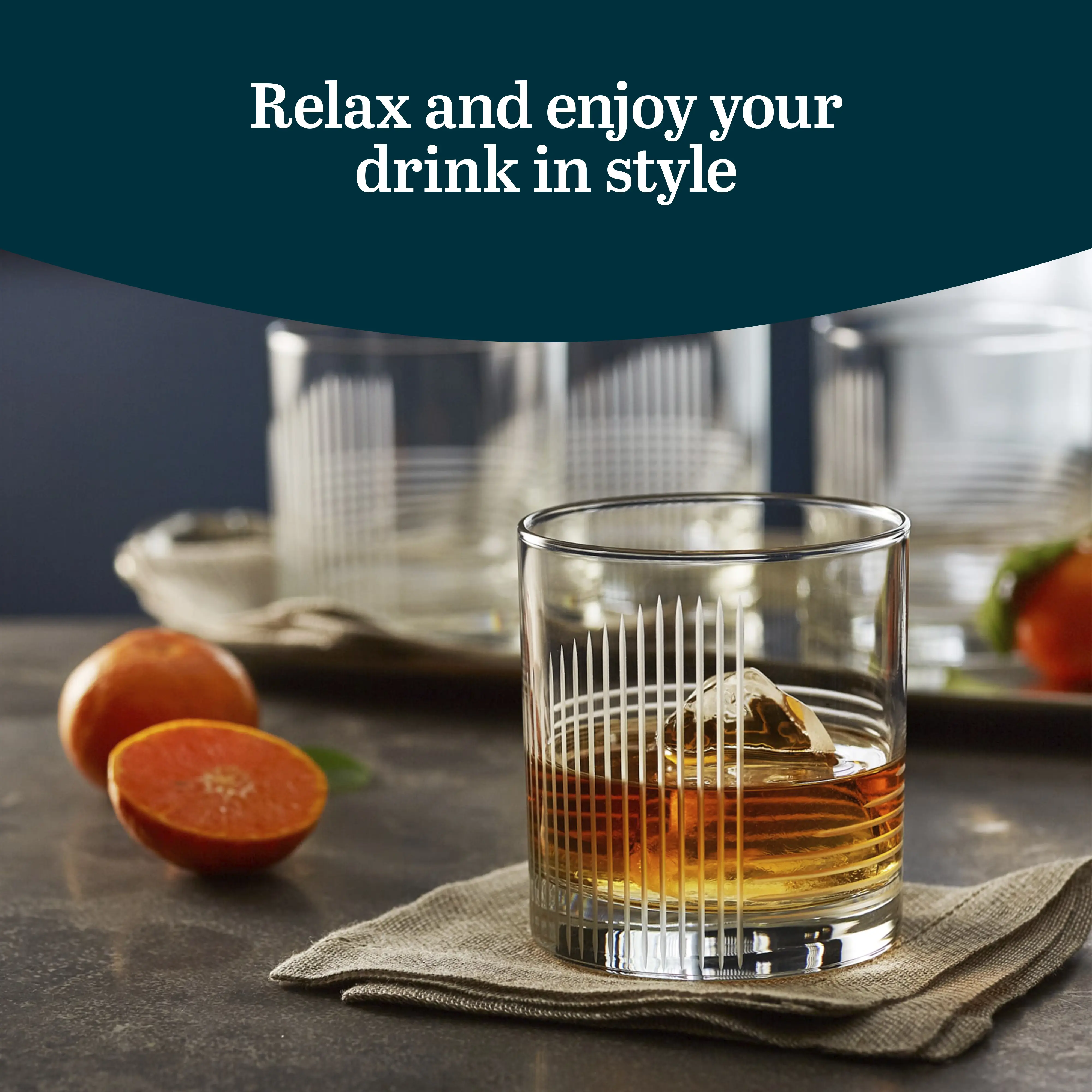 Inspired by Art Deco influences, the Passage Rocks Glasses from the Libbey Cut Cocktails collection serve up a modern twist on classic style. Clean-cut linear design makes this versatile 4-piece glass set perfect for an elegant evening or everyday use.