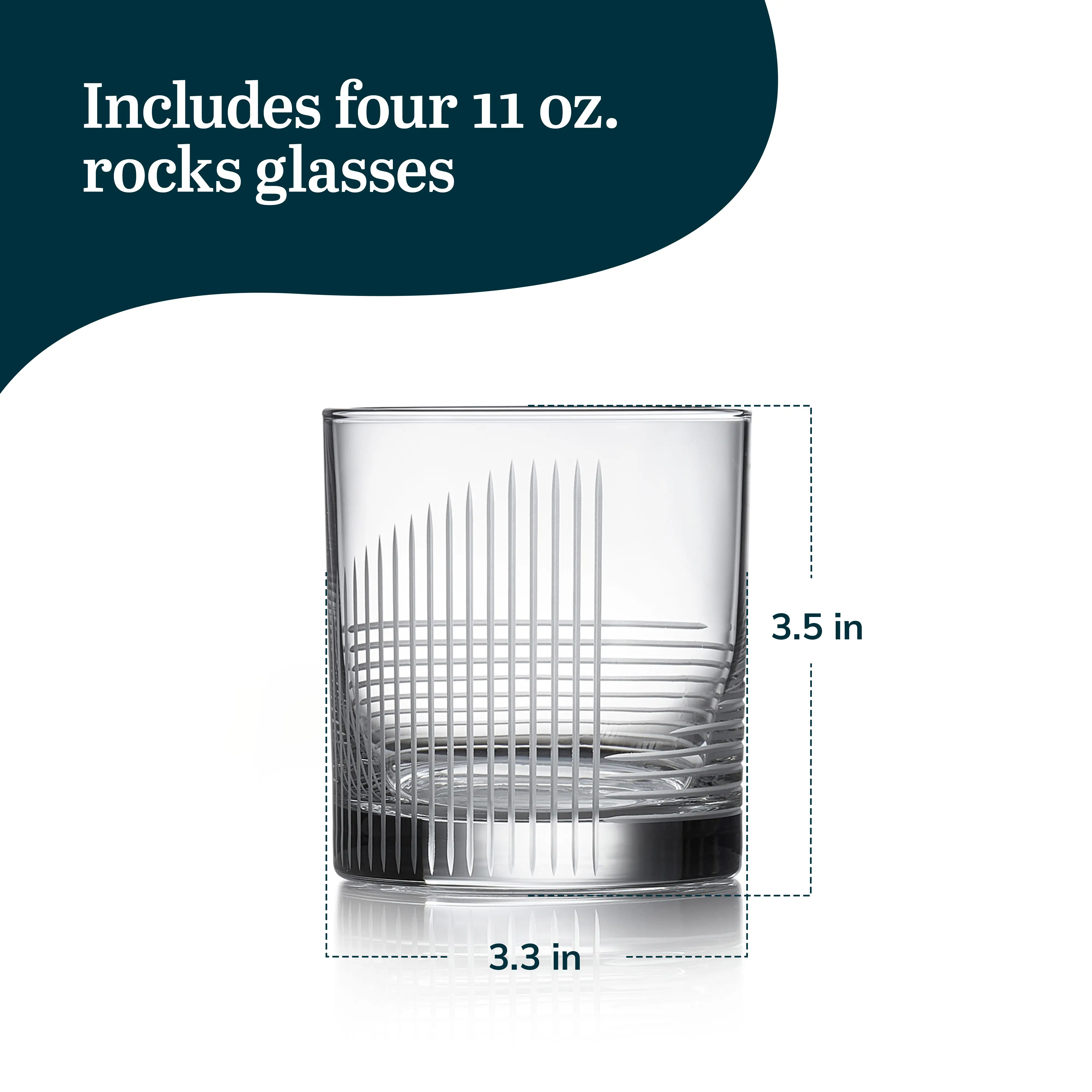 ·Includes four 11-ounce double old-fashioned rocks glasses (3.25-inch diameter by 3.5-inch height)