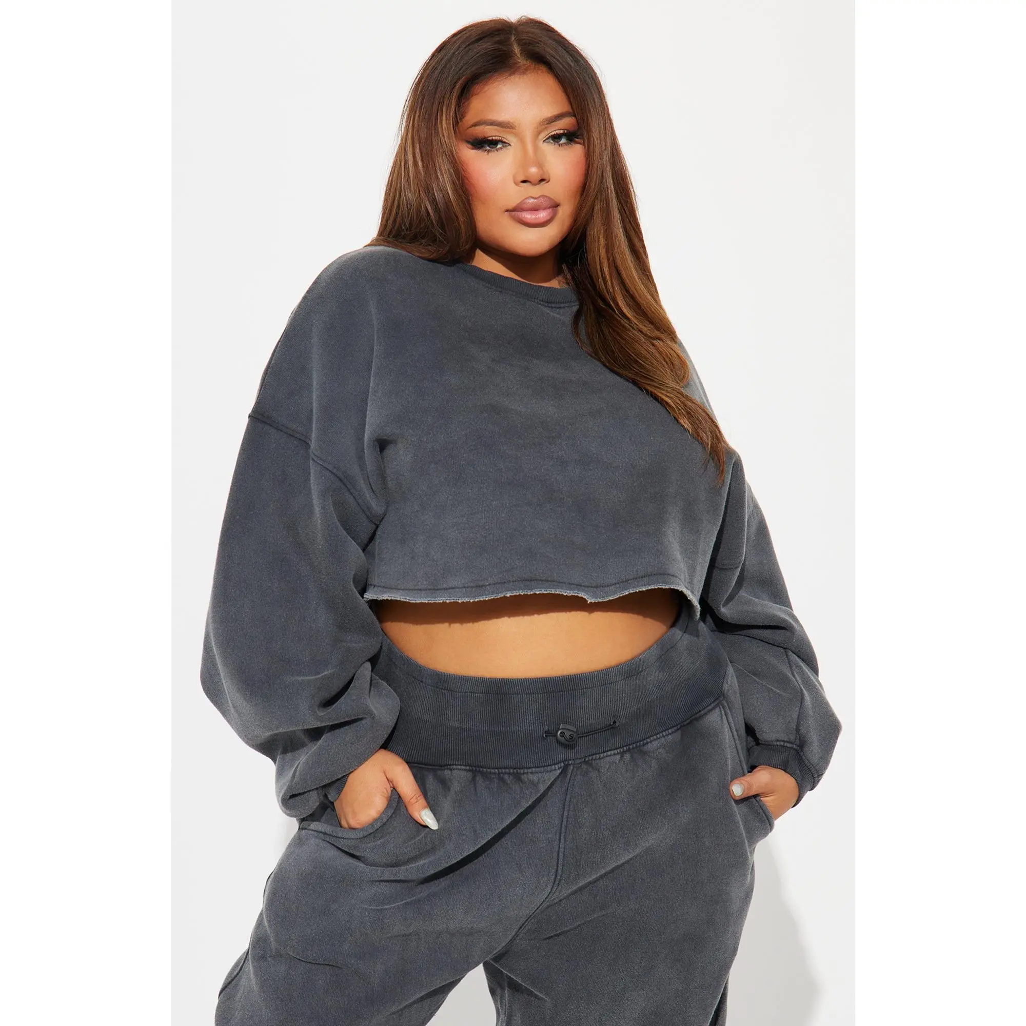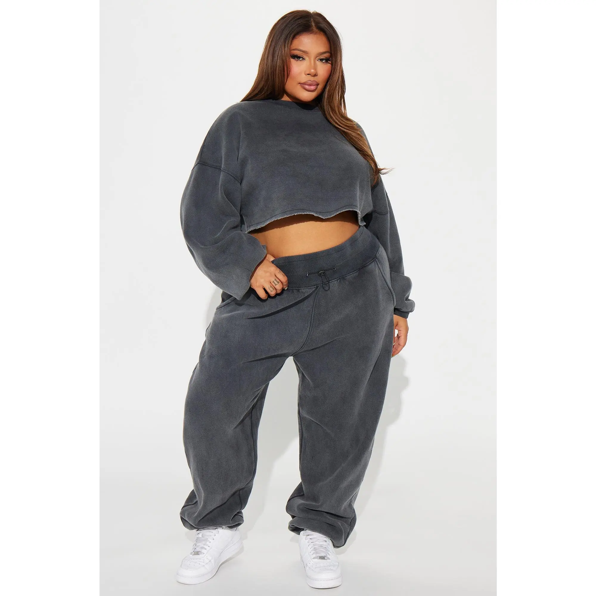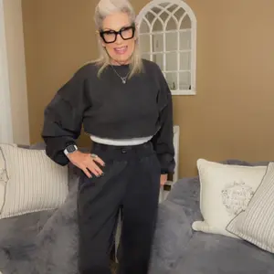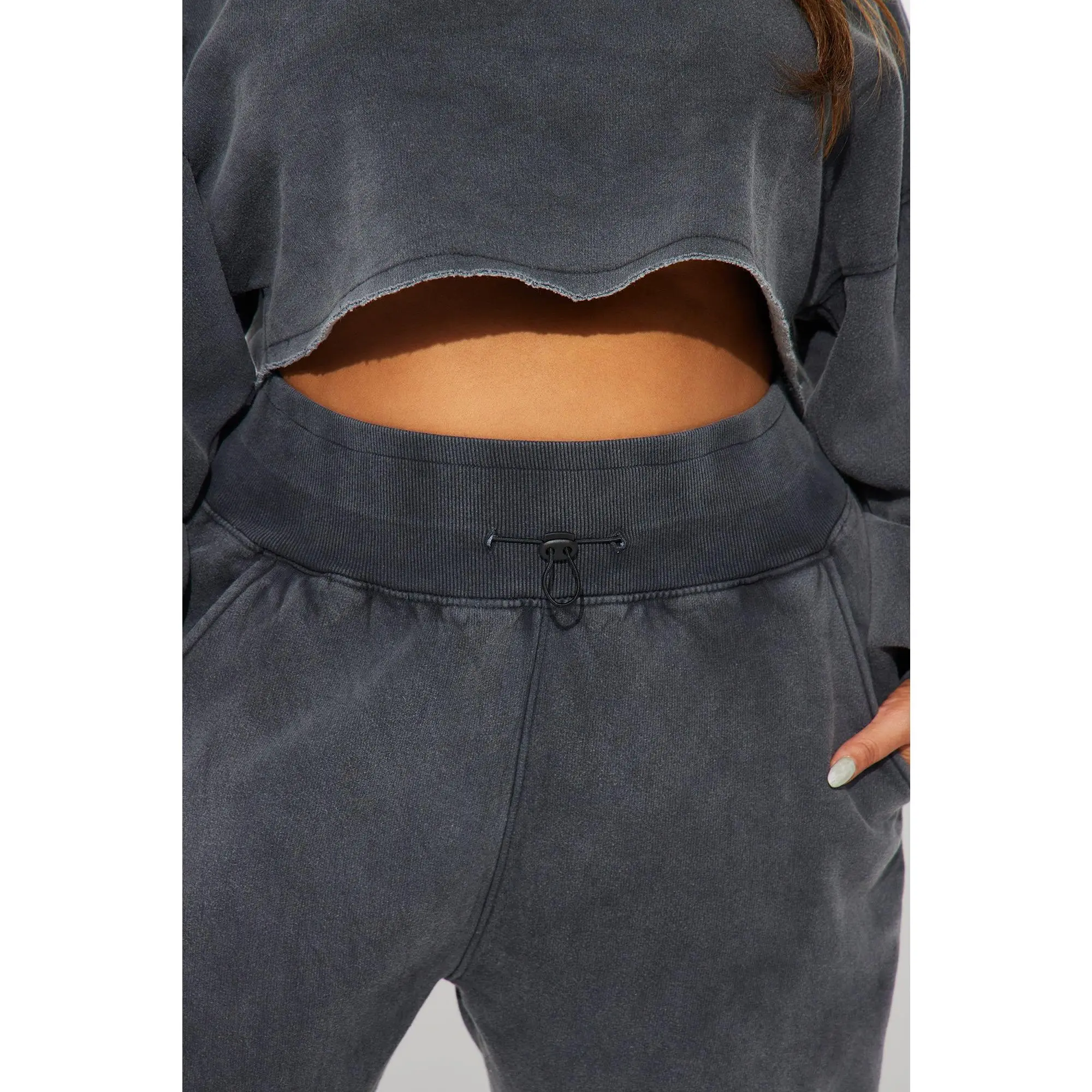This is such a cute set. I had a shirt on under because it was freezing outside but the crop is the perfect length and the joggers are perfectly baggy