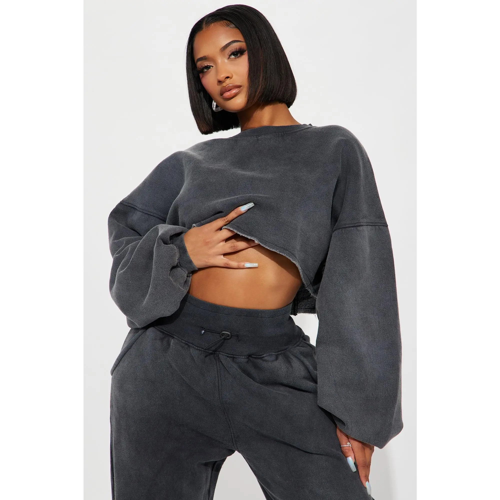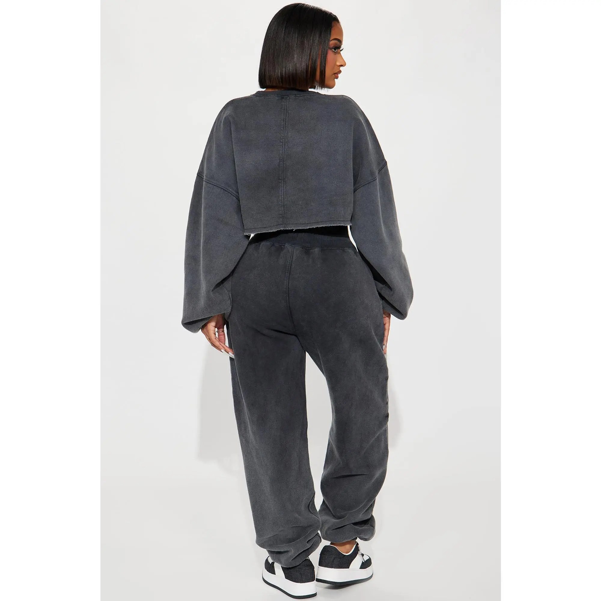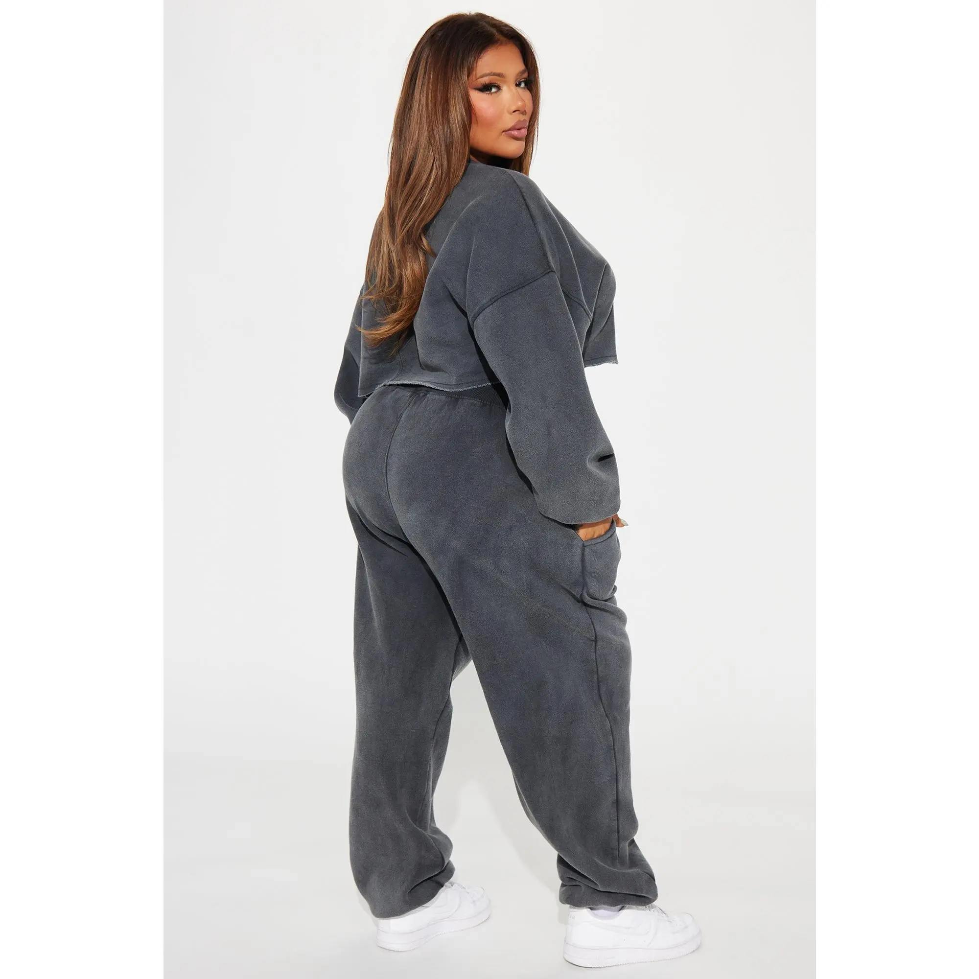 This is such a cute set. I had a shirt on under because it was freezing outside but the crop is the perfect length and the joggers are perfectly baggy