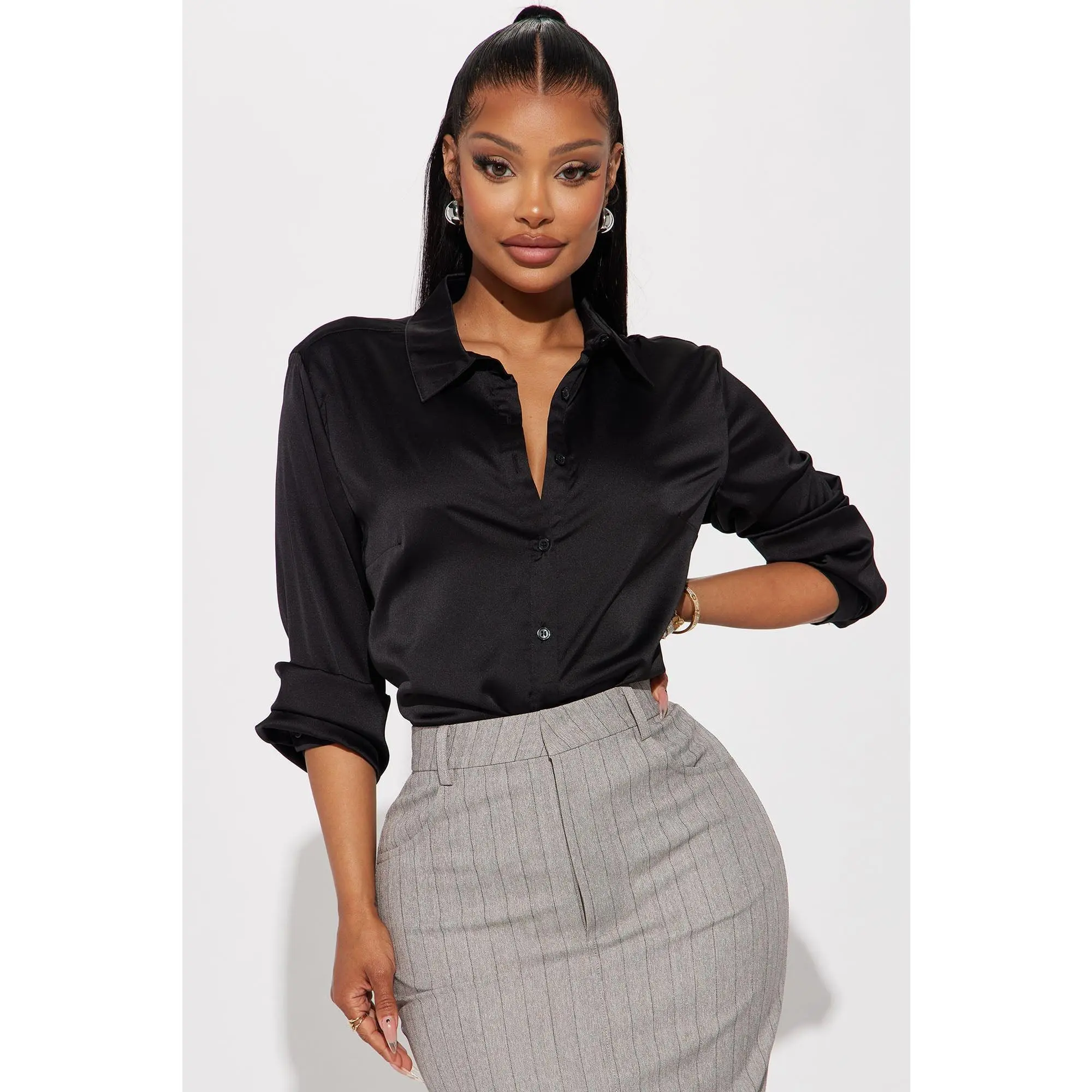 Camisa de satin de fashion nova #satinshirt #satinblack #tiktokshopcibermonday #tiktokshopblackfriday