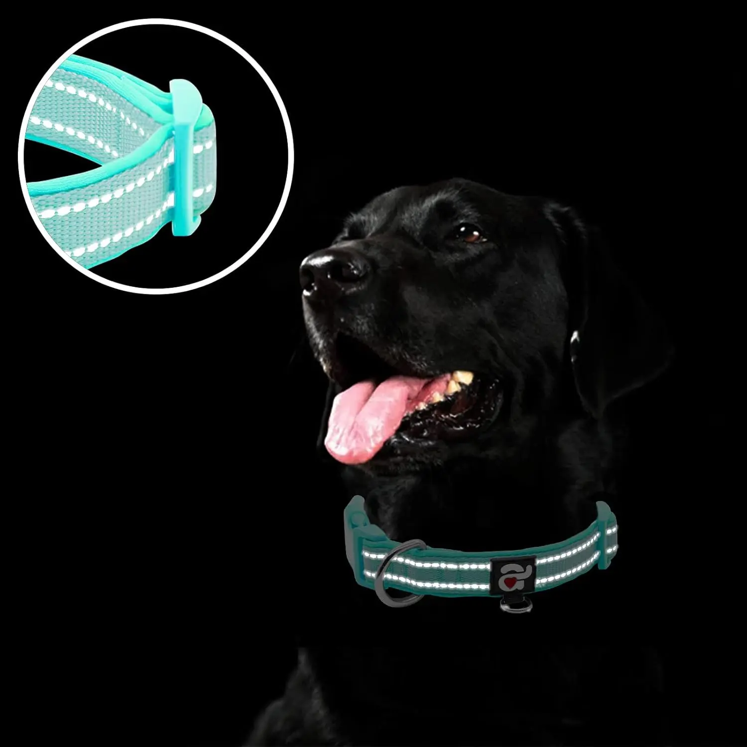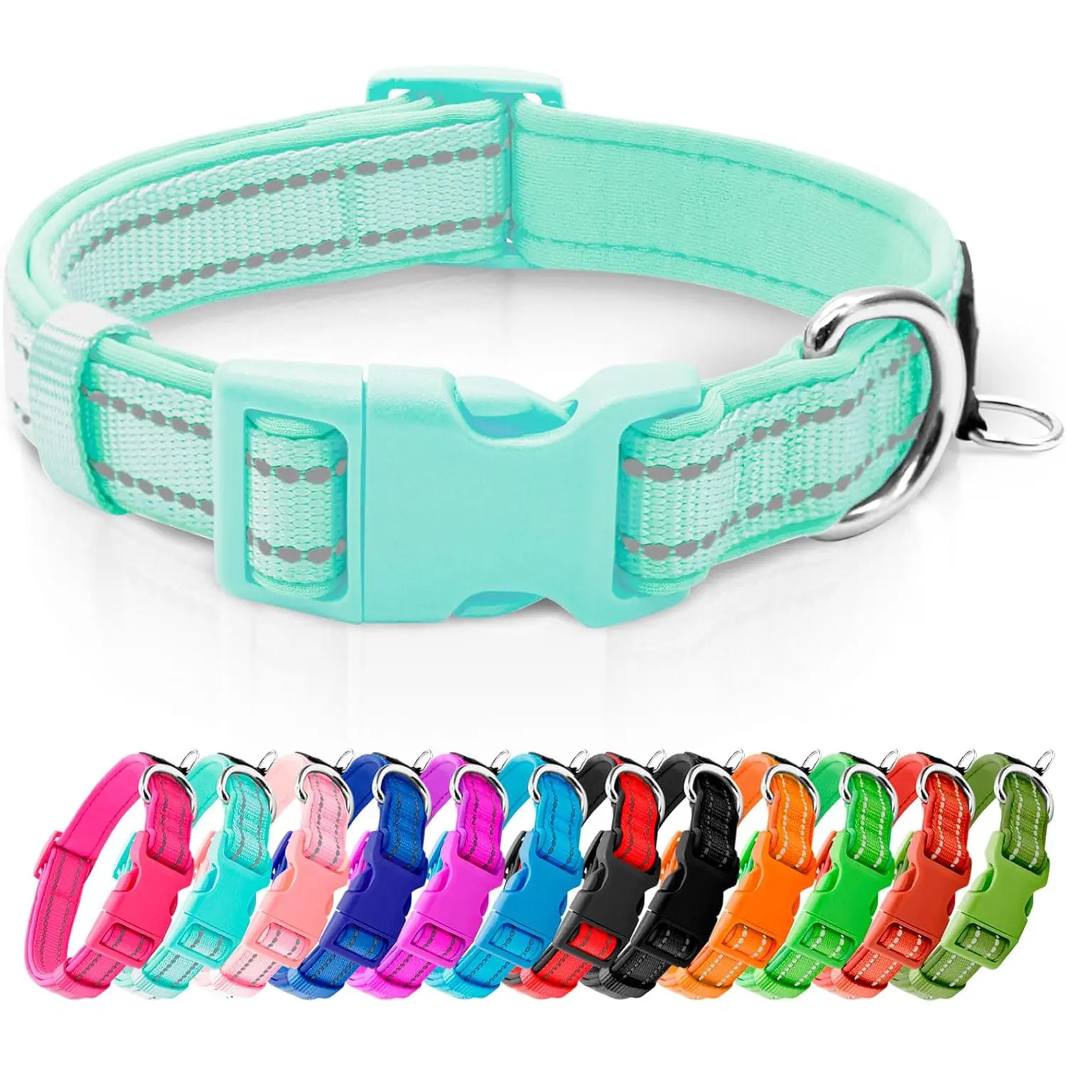 Azuza Reflective Dog Collar,Soft Neoprene Padded Pet Collar with ID Tag Ring,Adjustable for Small Dogs,Teal,S azuza
