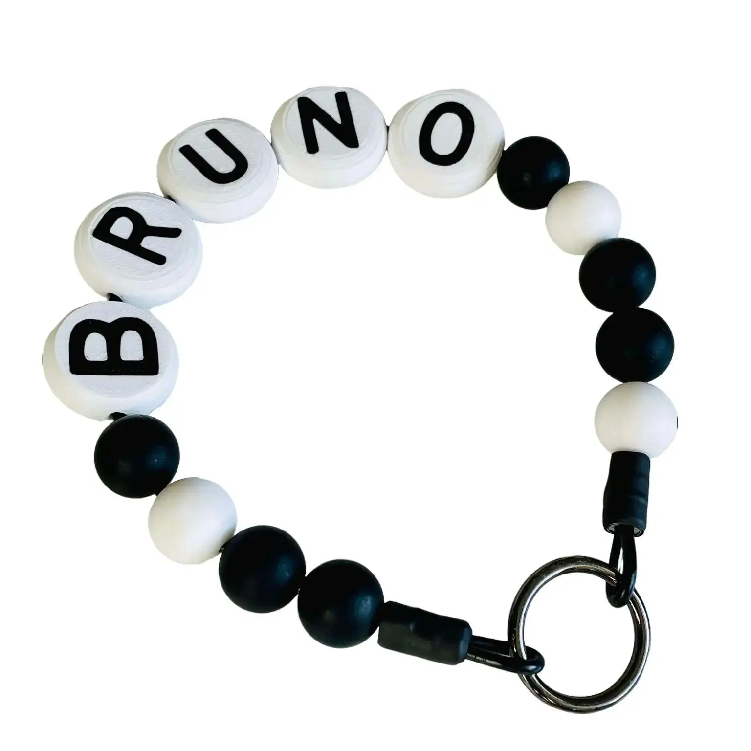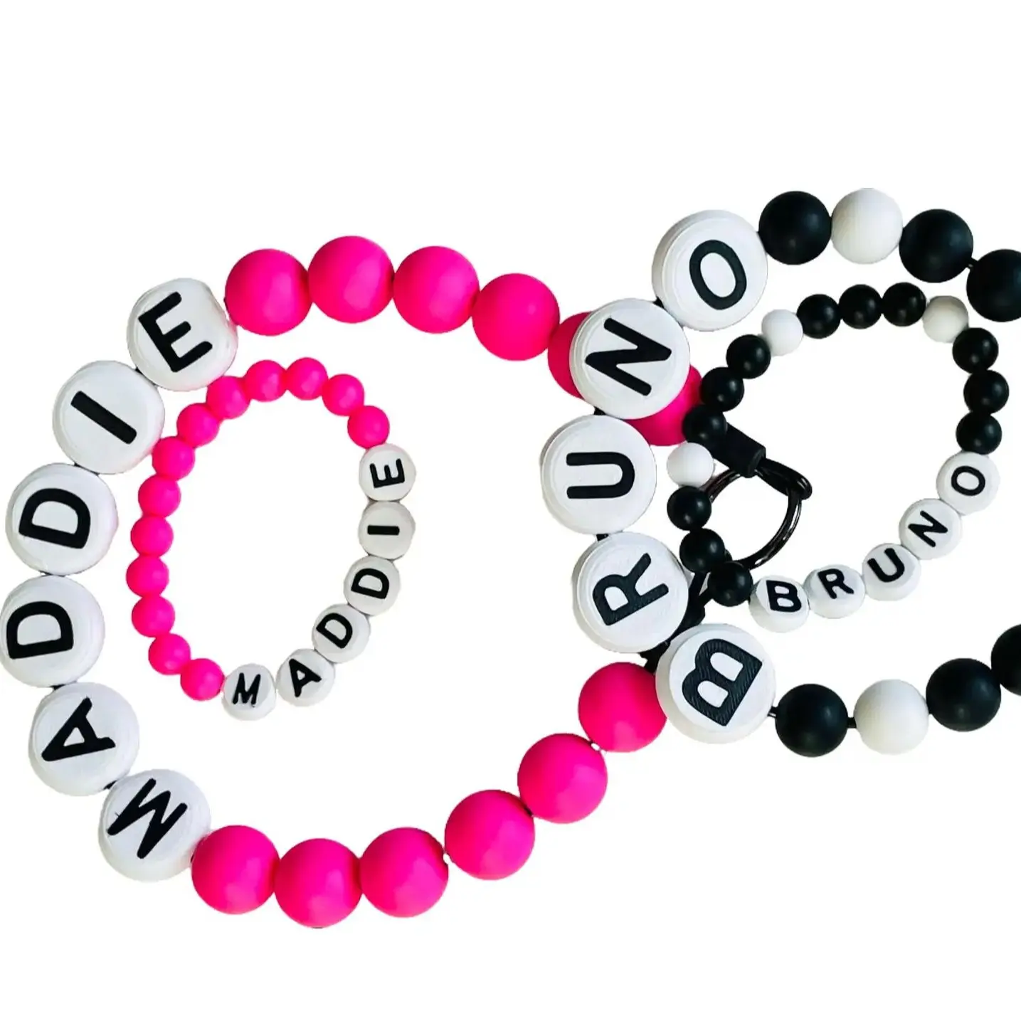 -Made with 25mm Letters and 15mm silicone beads.