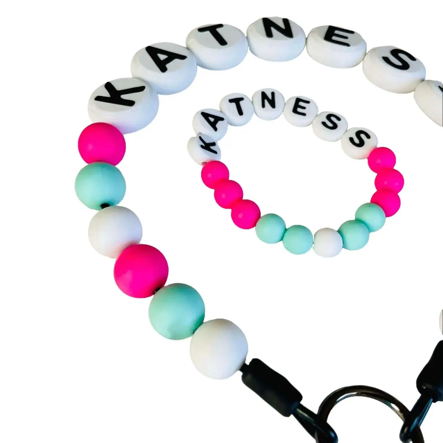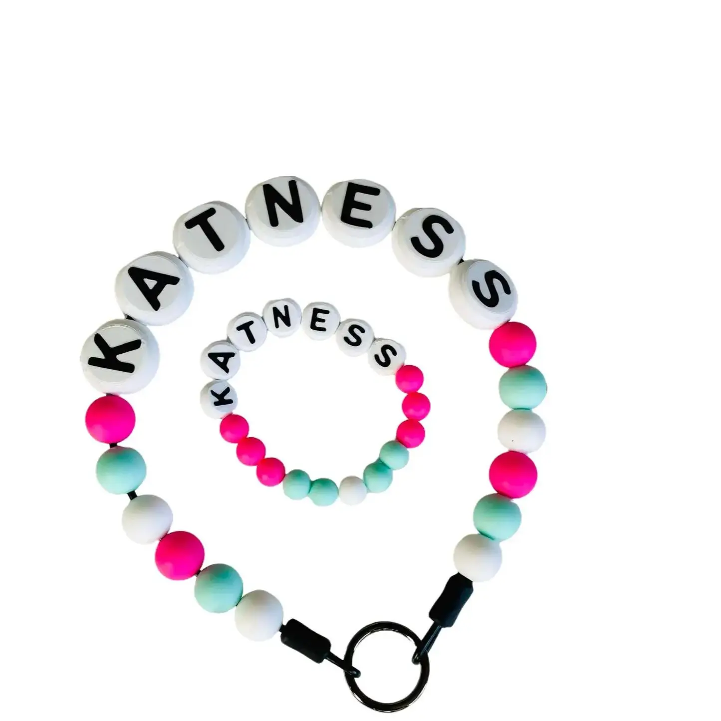 -Matching/ coordinating bracelet will be the most common size, 7 inches unless otherwise specified. Bracelets are made with durable latex- free elastic, 12mm letter beads, and silicone beads. Allow variation between collar and bracelet.