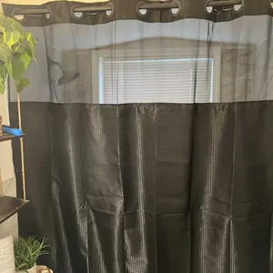 This shower curtain is crafted from 100% polyester, ensuring durability and ease of care. Choose from 9 colors: Grey, Navy Blue, Sage Green, White, Black, Ivory, Brown, Beige, and Dark Grey. The 72"W x 74"H size fits standard bathrooms, with a snap-in liner measuring 54" x 71". For a larger option, select 72"W x 84"H, fitting with a liner of 66" x 71".