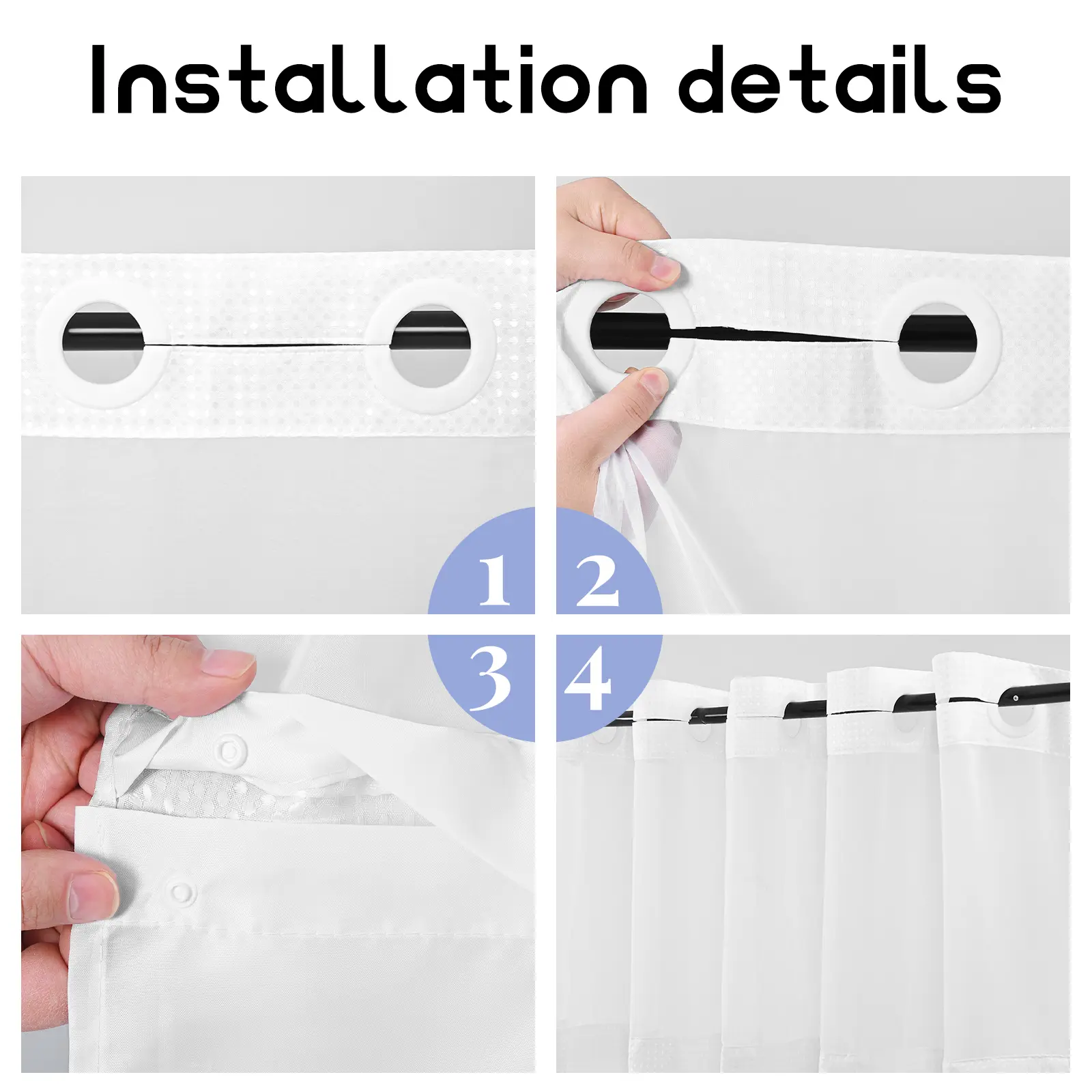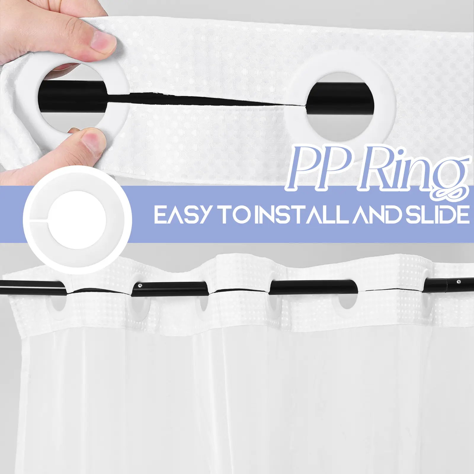 The curtain features "Split Rings" for effortless hanging. No hooks are needed, and the mesh upper panel allows light and air circulation. This see-through design maintains privacy, creating a spa-like shower experience. Perfect for any bathroom setup!