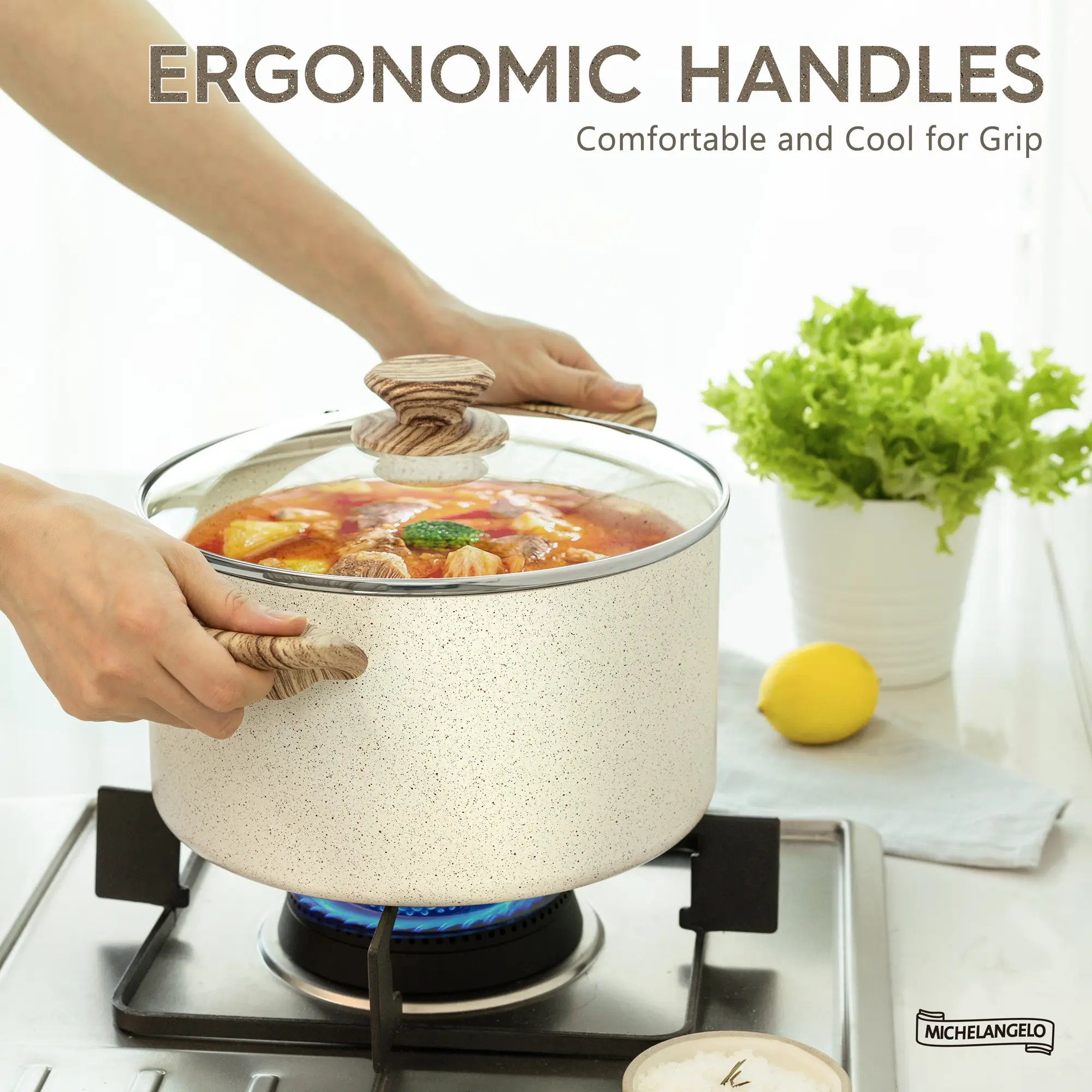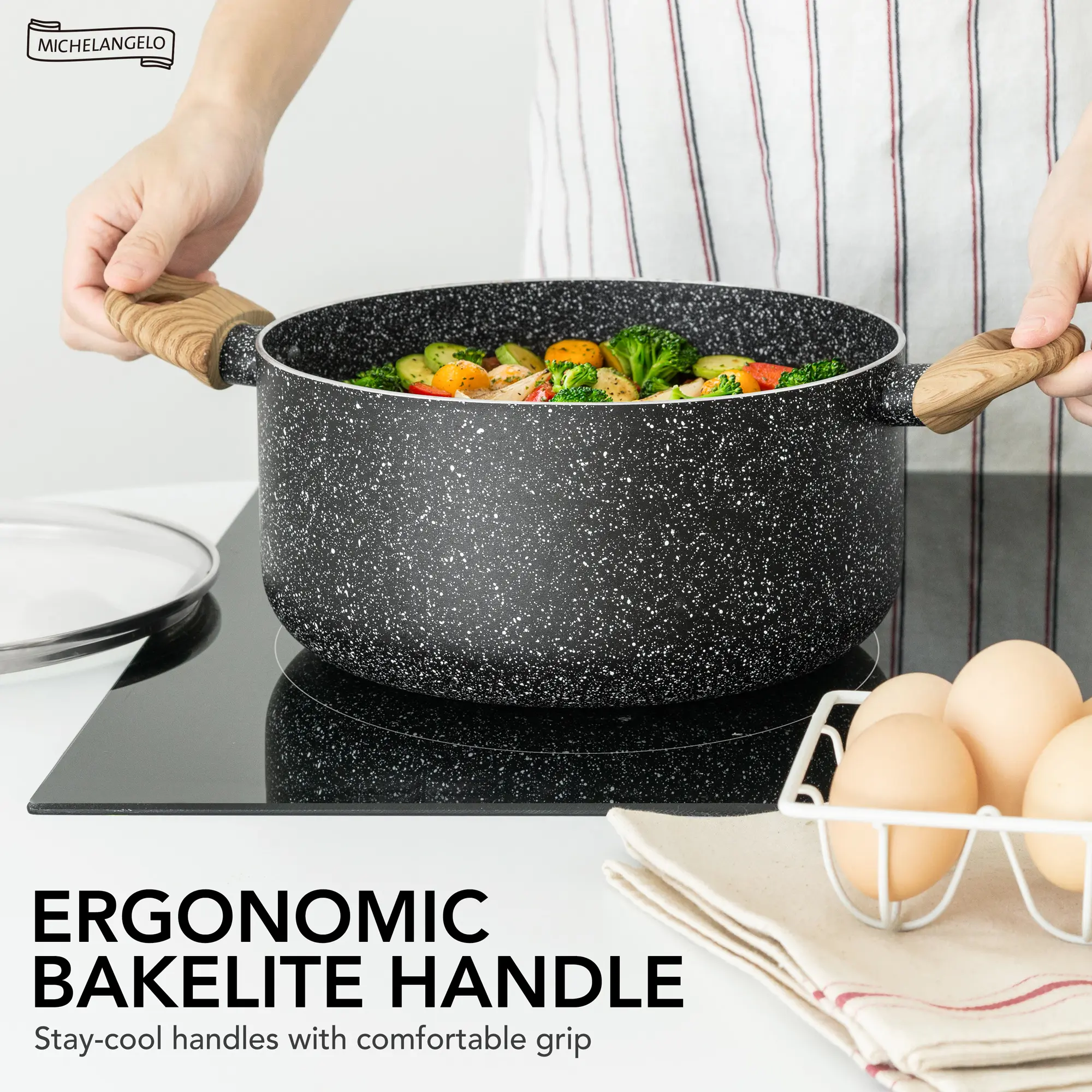 ·Comfortable and Practical Design - Our nonstick pot features ergonomically designed bakelite handles that provide a comfortable grip and reduce the risk of burns. The clear glass lid allows you to monitor your cooking without lifting the lid, preserving heat and flavor. Upgrade your kitchen arsenal and elevate your cooking experience with our outstanding stock pot!