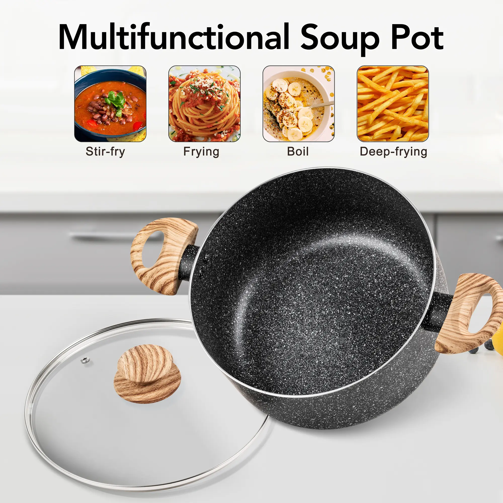 ·Built to Last - Made with superior quality materials, our soup pot is designed to withstand years of frequent use. Its sturdy aluminum body distributes heat evenly and quickly, ensuring perfectly cooked meals every time.