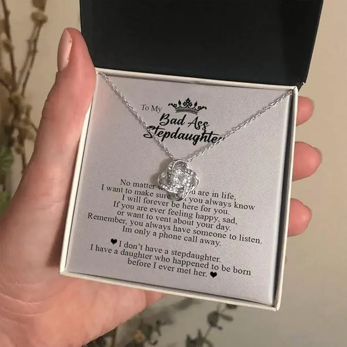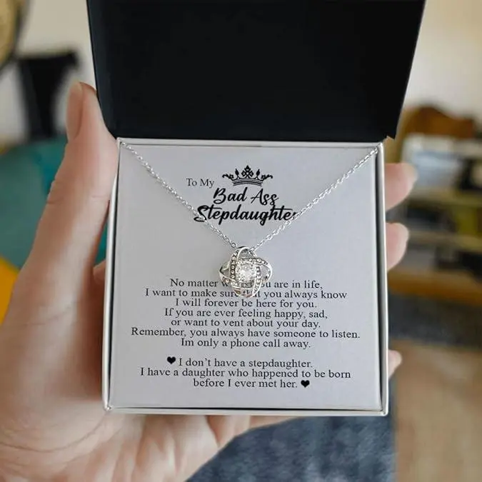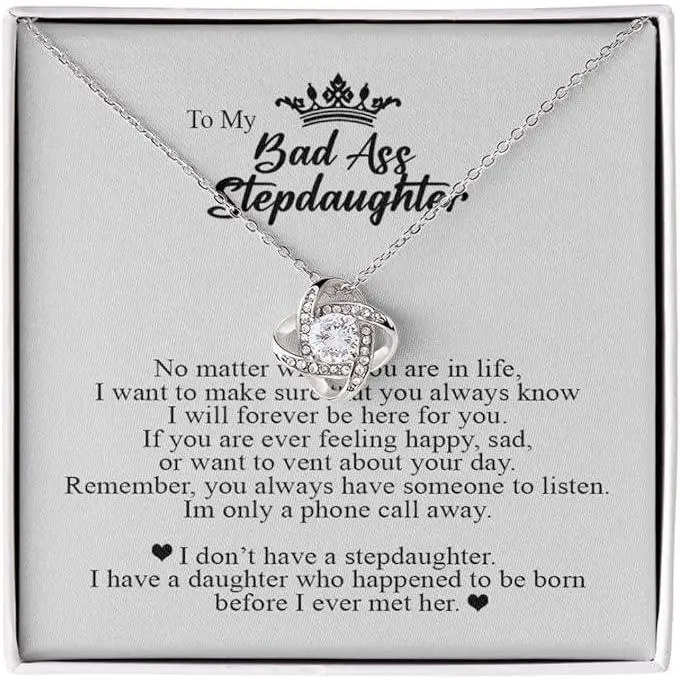 To My Bad Ass Step Daughter, Gifts for Stepdaughter, Step Daughter Gifts, Love Knot Necklace, Jewelry Card for Her, Love Knot Necklace Present To My Bonus Daughter From Stepmom, Women's Jewelry