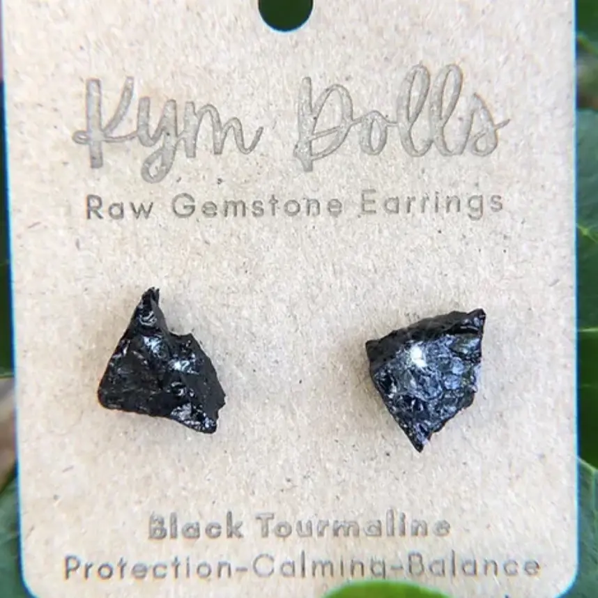 These raw black tourmaline earrings are a beautiful and unique addition to any jewelry collection. The earrings are made of unpolished black tourmaline, which is known for its protective properties. The earrings are set with sterling silver posts and back stoppers, ensuring that they are durable and long-lasting. Each earring set is cut from similar stones and is not identical, making them one-of-a-kind.