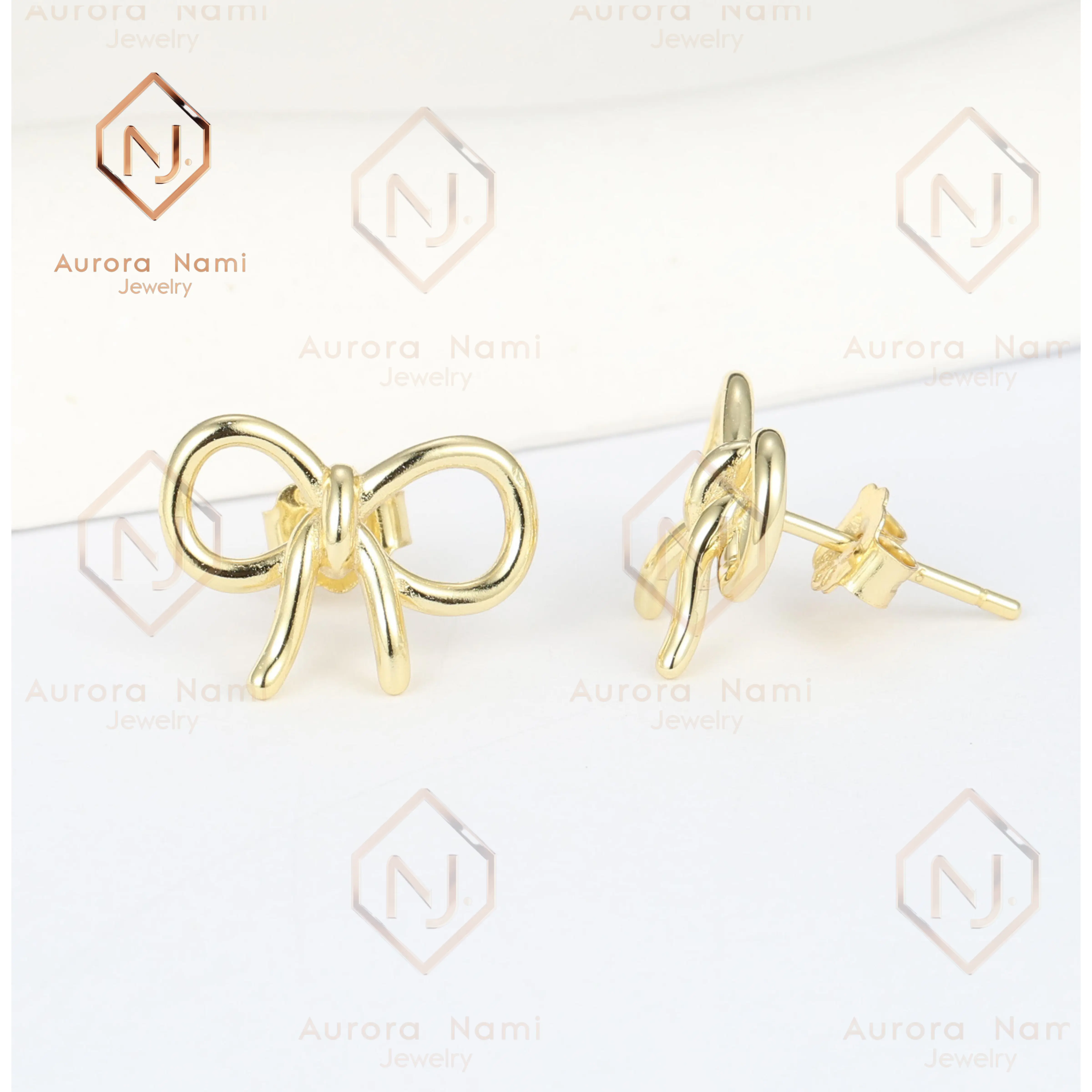 PAVOI 14K Gold Plated Bow Stud Earrings for Women - Premium Cubic Zirconia Dainty Coquette Studs Earring