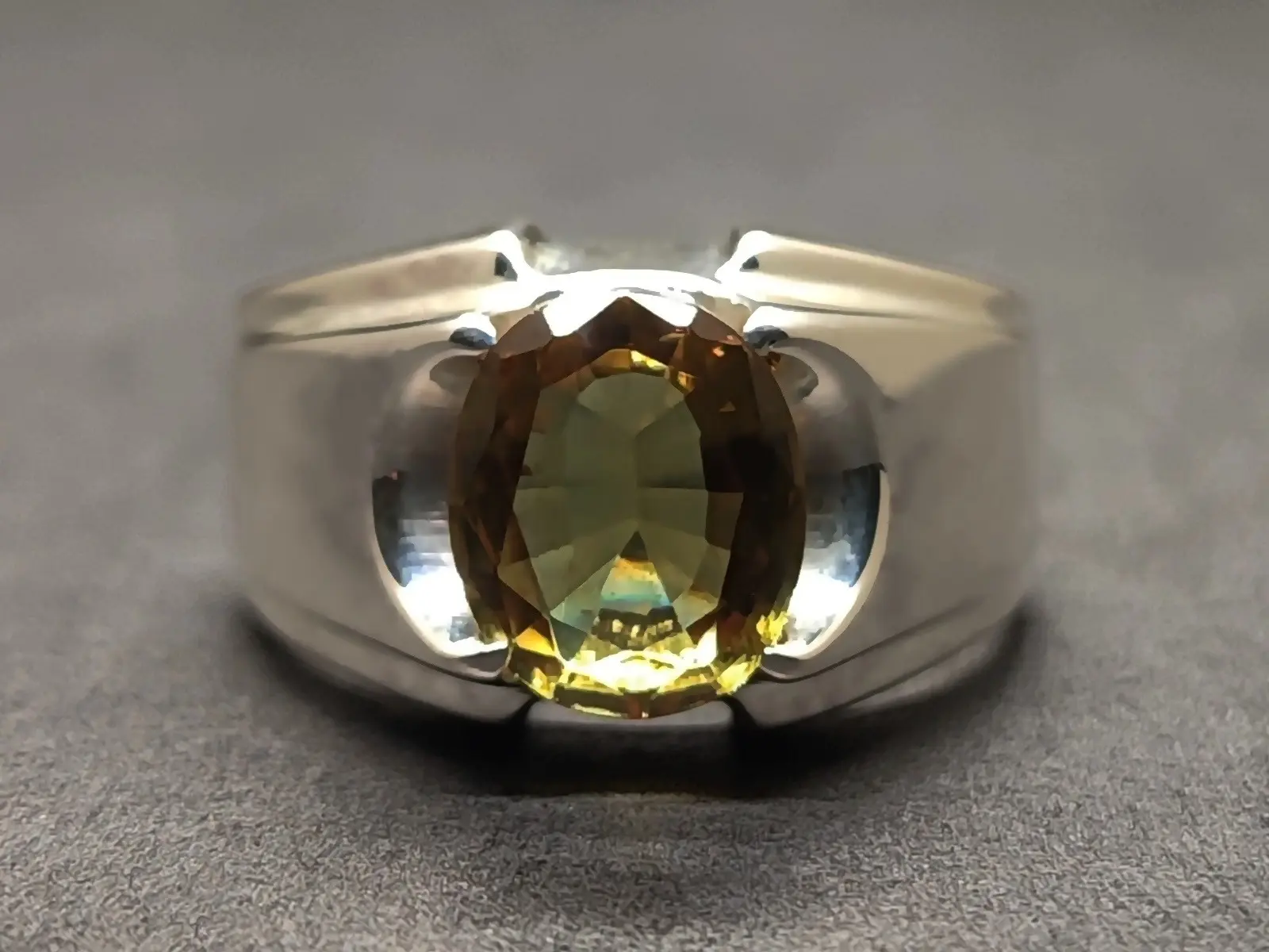 5 Carat Oval Cut Color Changing Lab Alexandrite Sterling Silver 925 Handmade Men's Plain Ring