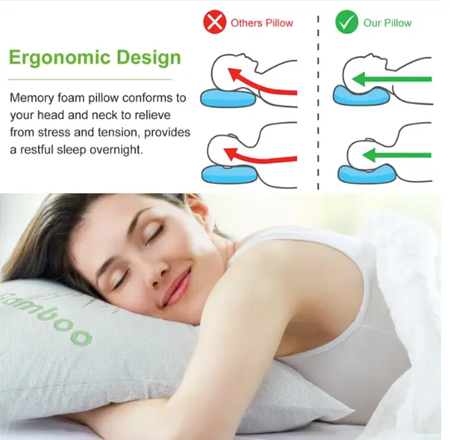 The memory foam filling molds to your head and neck, providing ergonomic support to alleviate any discomfort. The bamboo material is not only skin-friendly but also anti-bacterial and breathable, keeping you cool throughout the night.