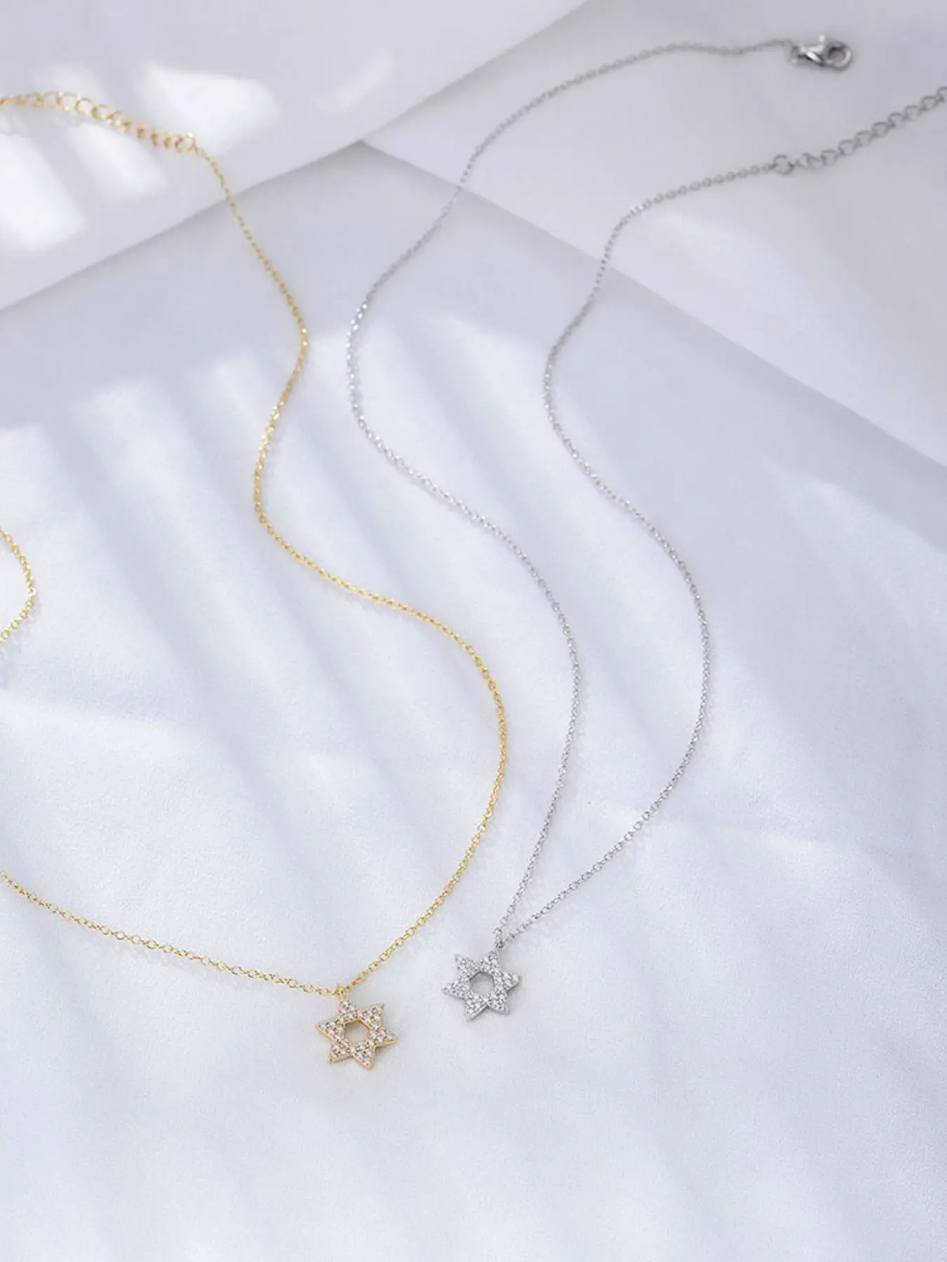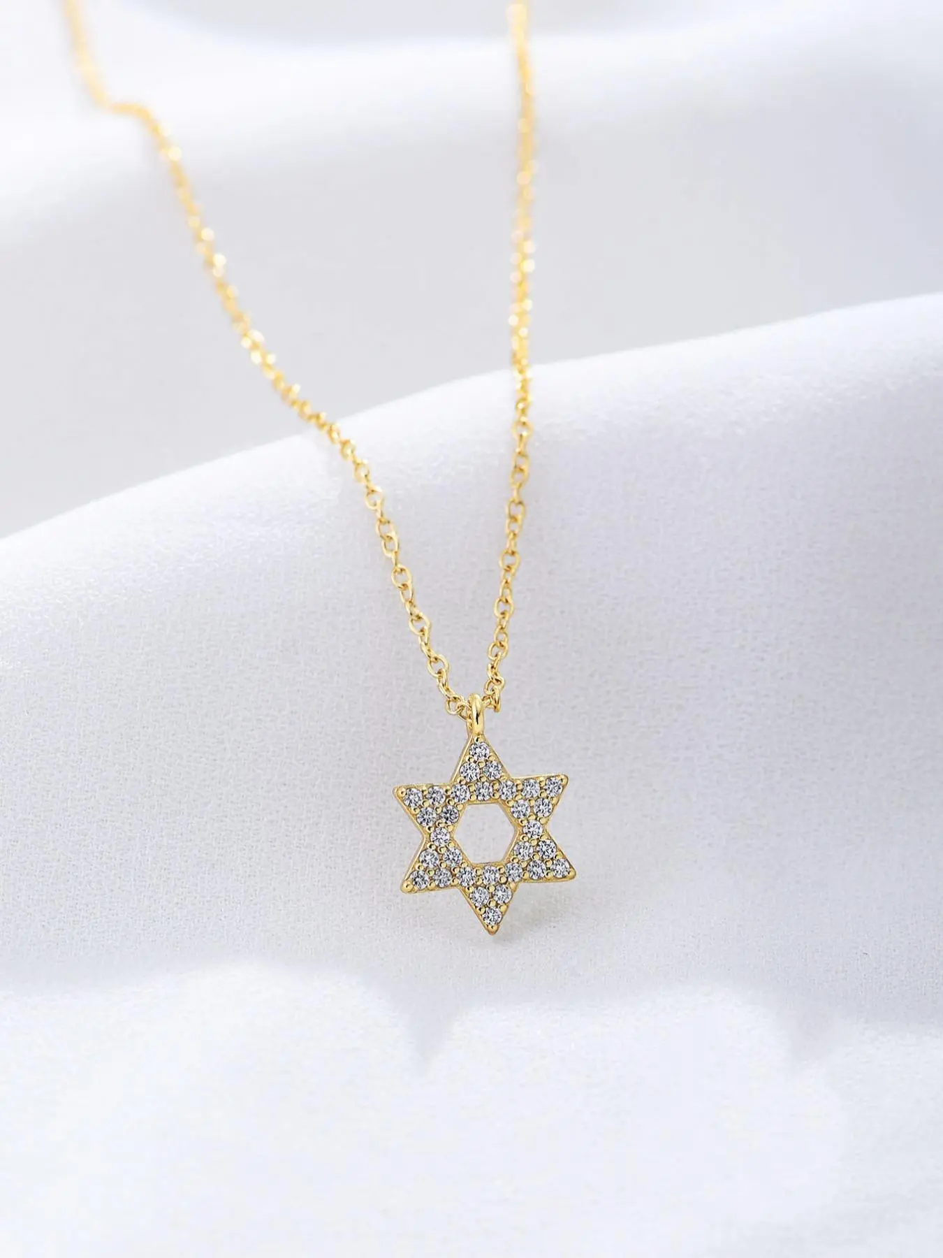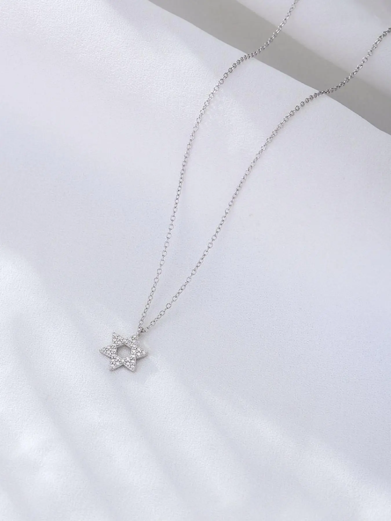 925 Sterling Silver Synthetic Zircon Inlaid Star Of David Pendant Necklace for Women, Fashion Jewelry for Party, Daily Decor, Trendy All-match & Exquisite Jewelry for Birthday Gift, Mom Gifts, Elegant Necklace