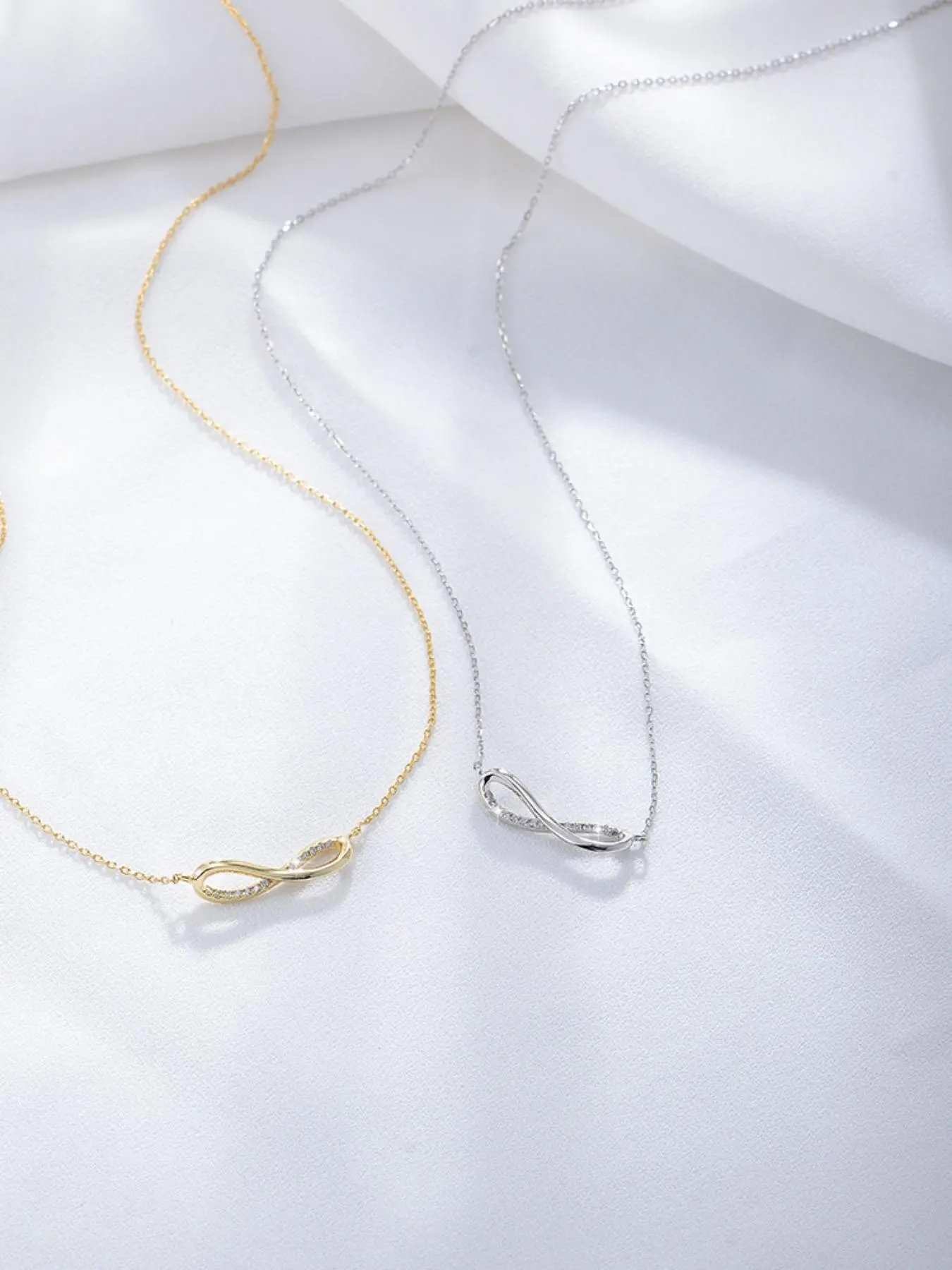 S925 Sterling Silver Infinity Symbol Design Pendant Necklace, Artificial Zircon Decor Necklace for Women & Girls, Trendy All-match & Exquisite Jewelry for Birthday Gift