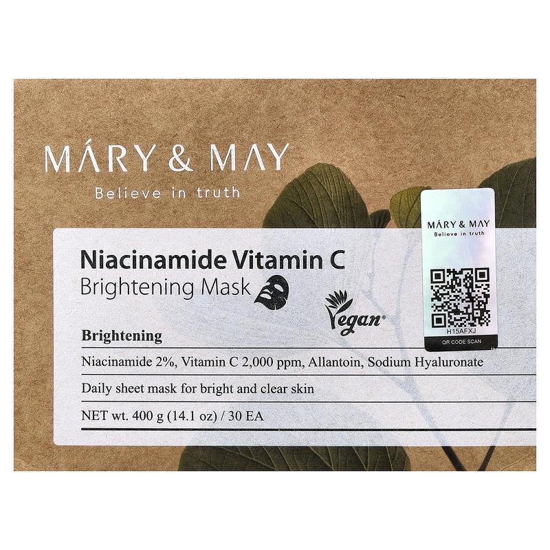 Mary & May Niacinamide Vitamin C, Brightening Beauty Mask, 30 Sheets, 14.1 oz (400 g)
