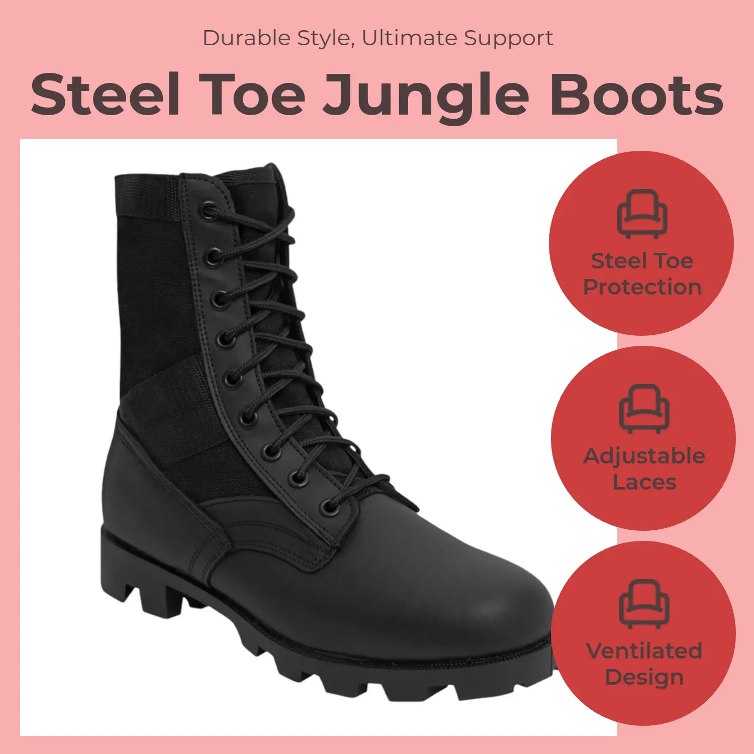 ·Design: Classic 8-inch jungle boot style for superior ankle support