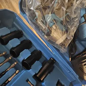 【Power tool set contents】 1 * Cordless impact wrench 1 * Plastic box 1 * Charger 2 * 3.0 Ah lithium-ion batteries 1 * 250 flexible shaft 6 * Screw heads 1 * 1/2 hexagonal adapter 5 * magnetic sockets
