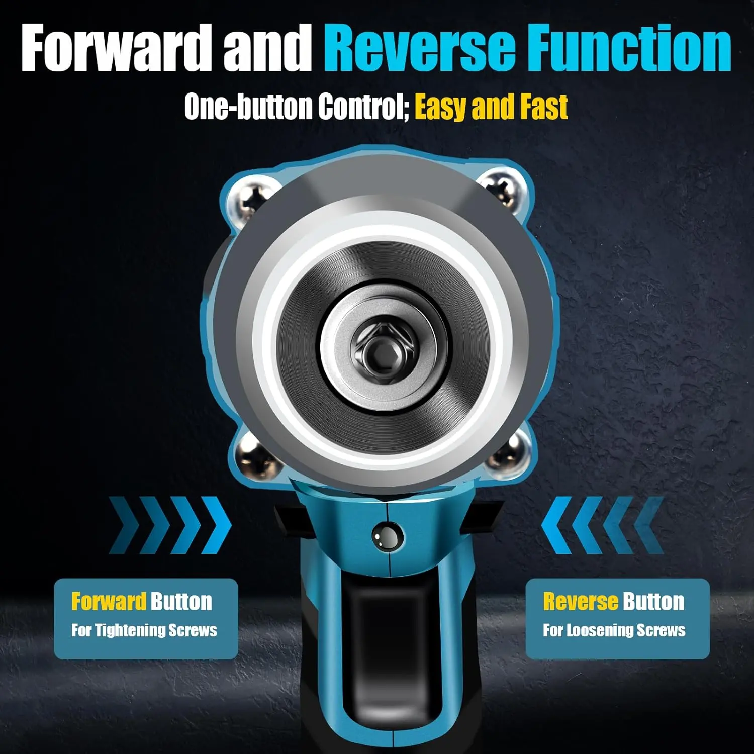 [Forward and reverse automatic stop mode buttons] This power tool has forward and reverse adjustment and automatic stop buttons, which can easily realize the functional conversion of tightening and loosening screws, nuts and other fasteners. Forward mode: With precise clockwise torque, it ensures that screws and other parts are firmly tightened, greatly improving work efficiency and making your work easy. Reverse mode: It provides you with powerful counterclockwise torque when removing screws, etc., and efficiently and labor-savingly copes with the removal needs of various fasteners. It provides great convenience for various assembly, maintenance and other work.