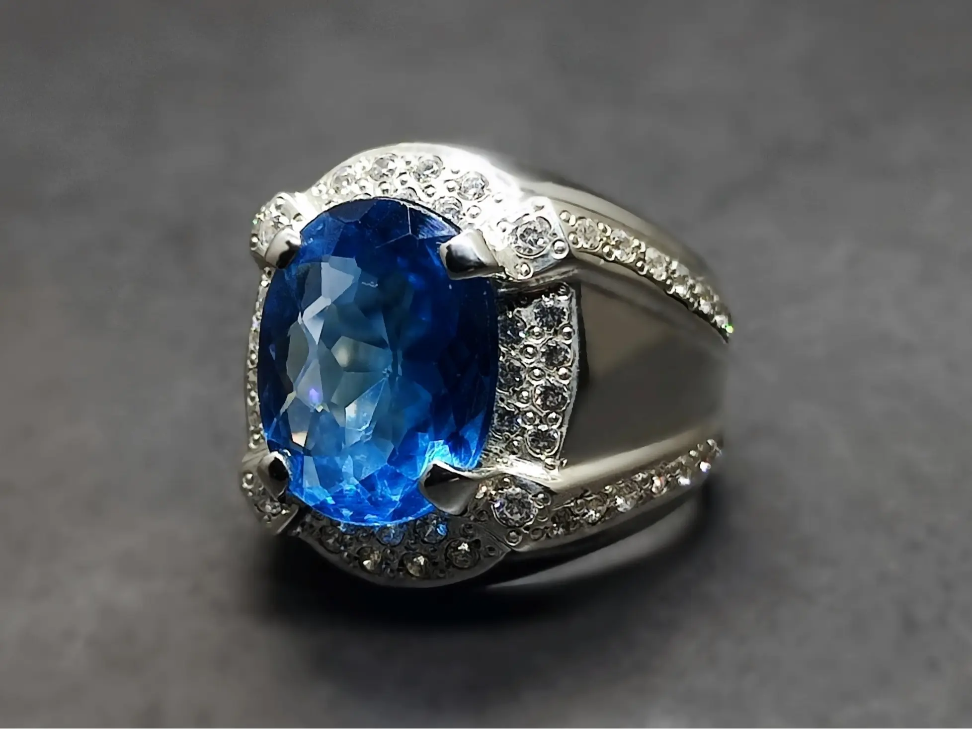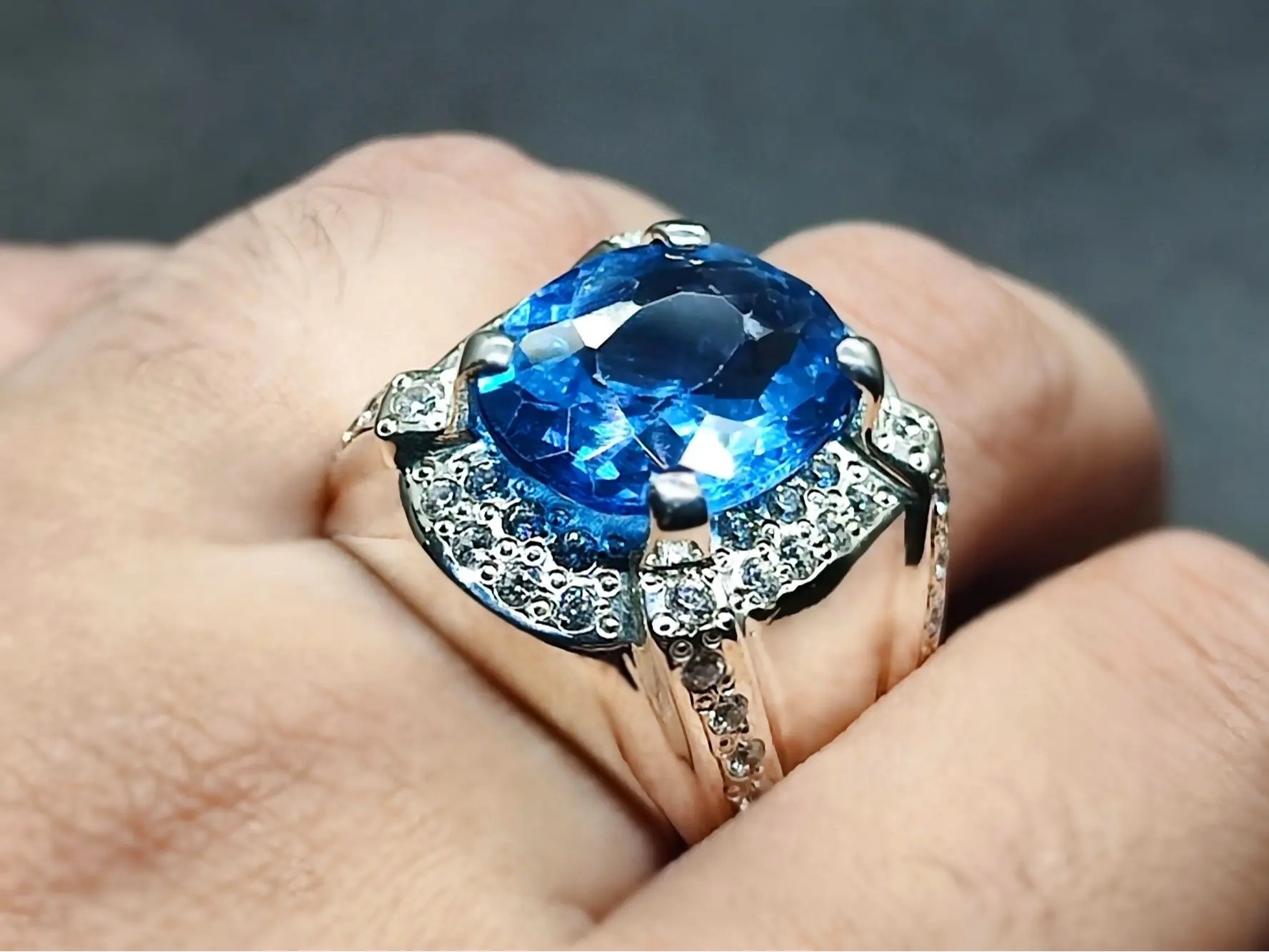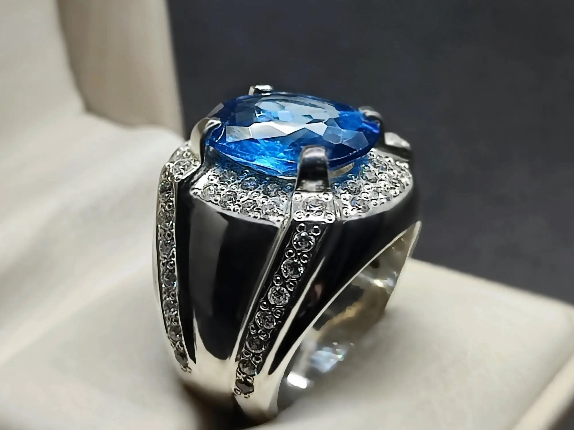 ✨ Discover the beauty of this handmade men's ring, featuring an oval cut 24-carat deep blue lab-created topaz. Originating from Thailand, this gemstone adds a touch of sophistication. The dimensions are precisely 20 x 14 x 8 mm, making it a striking piece. Crafted from sterling silver 925, the ring weighs between 18 to 20 grams. It comes with a ring box, ensuring safekeeping.