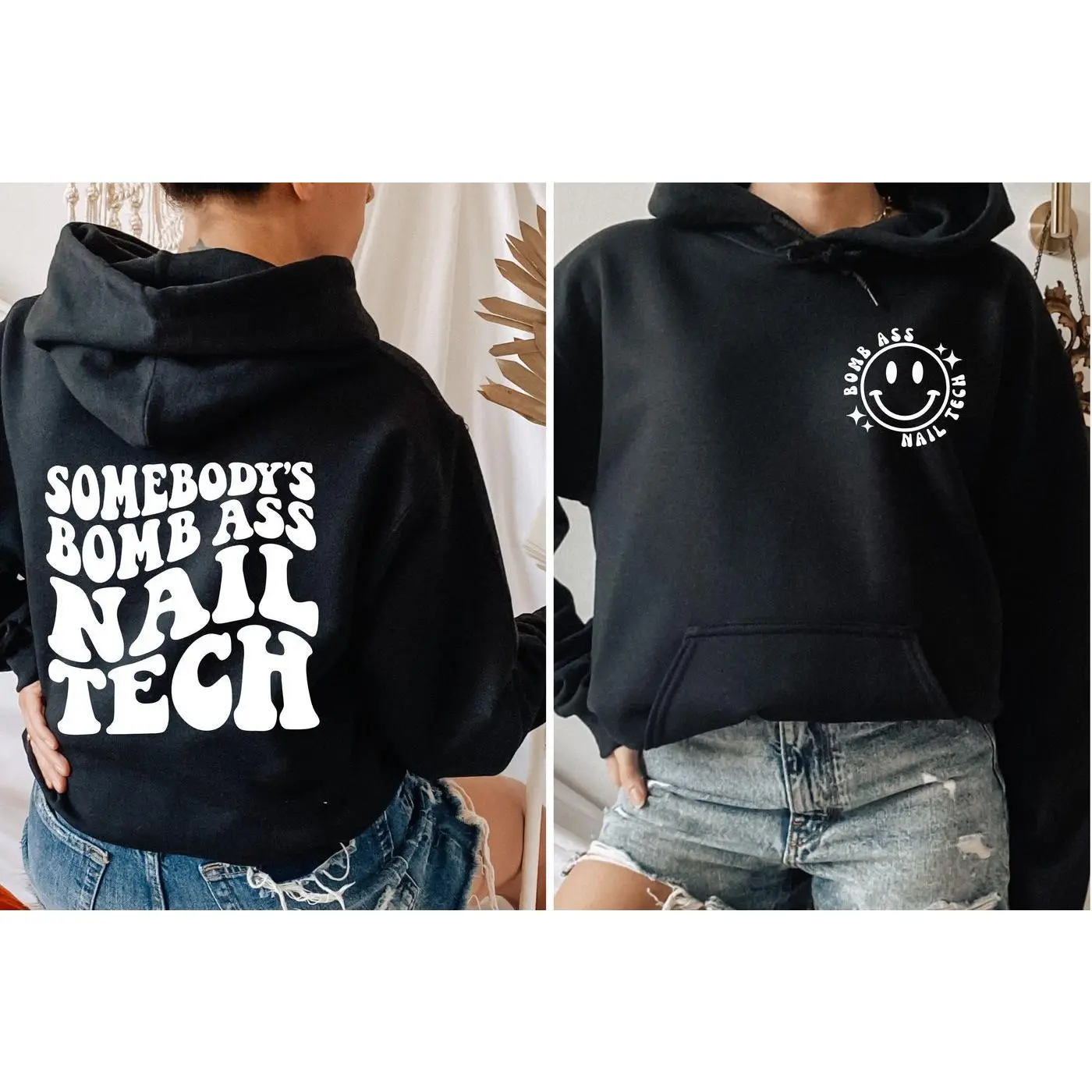 5. Somebody Bomb Nail Tech Sweatshirt and Hoodie front and Back, Nail Tech shirt, Retro women's shirt, Nail artist shirt, Somebody Bomb shirt,