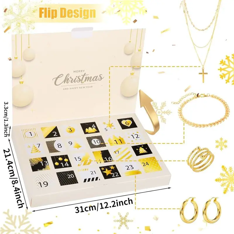 ·【Jewerly Advent Calendar】: Christmas surprises are on the way! This advent calendar 2024 for women hides 24 days of jewelery feast, jewelry advent calendar 2024 include necklace, bracelet, earrings, ring as you like, unlock a new look every day. Gift it to yourself, love yourself more; gift it to your lover, love every day. 24 day countdown to Christmas, there are surprises every day. It is not only a festive decoration, but also a thoughtful gift for parties, letting love and beauty pass in winter.