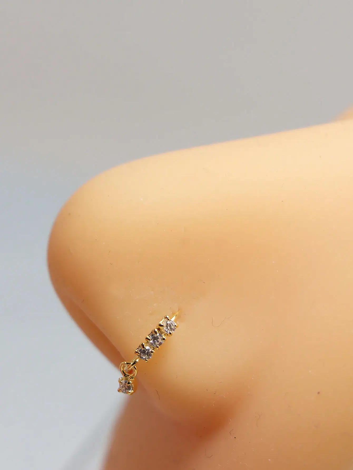 1PC 925 Sterling Silver Nose Ring Hoop CZ Cartilage Earring Dangling Nose Body Piercing Jewelry