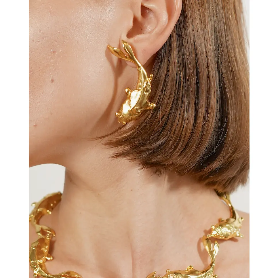 Our jewelry is hand set in 24k gold plate over nickel-free brass and sealed to prevent tarnish.Maintain the jewelry's beautiful luster by avoiding contact with lotion, perfume, makeup, or any harsh cleaning products.Remove your jewelry before showering, swimming, exercising.