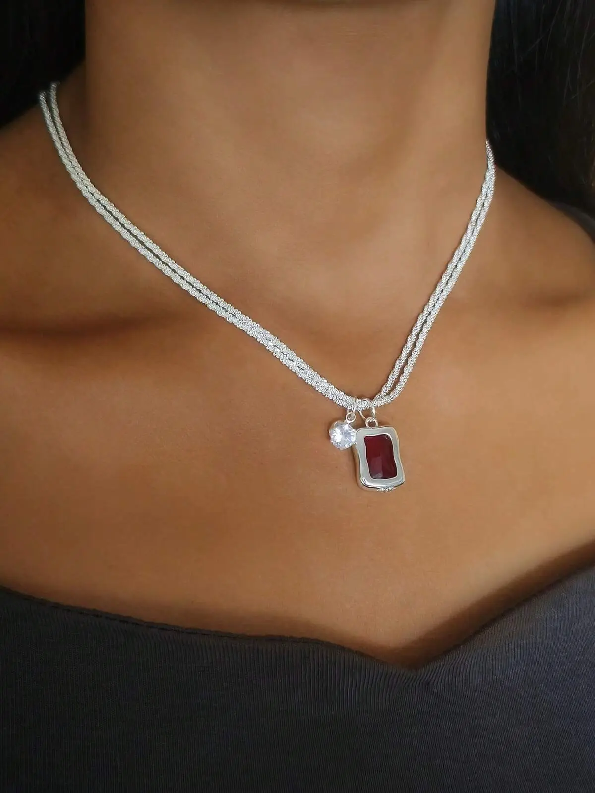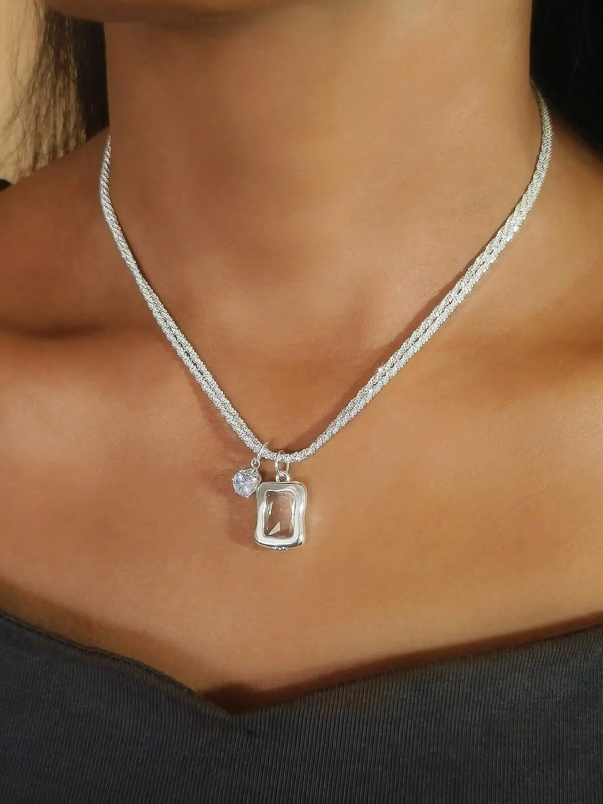 This 1pc Unique Design 925 Silver Synthetic Cubic Zirconia Square Gemstone Necklace is a stunning piece of jewelry that exudes elegance and sophistication.