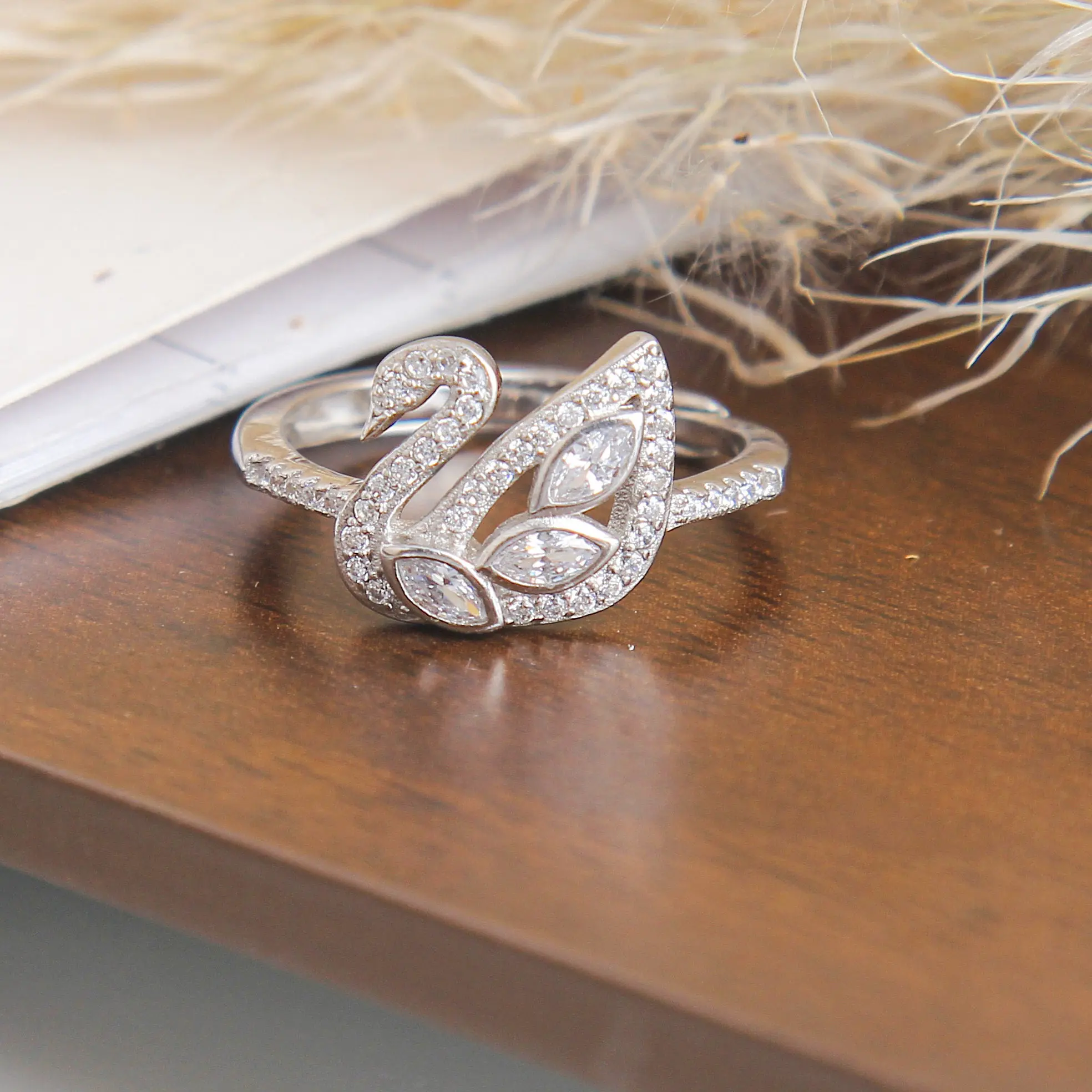S925 Sterling Silver Swan Charm Ring - Hollow Design with Pavé-Set Sparkling Zirconia, Elegant and Dazzling Statement Ring for Women