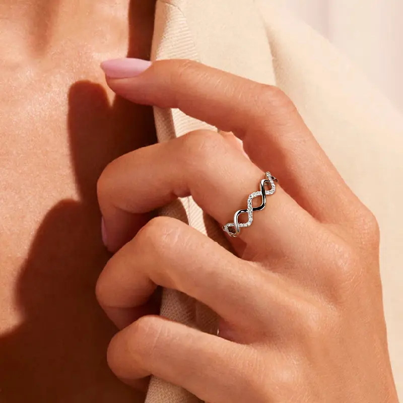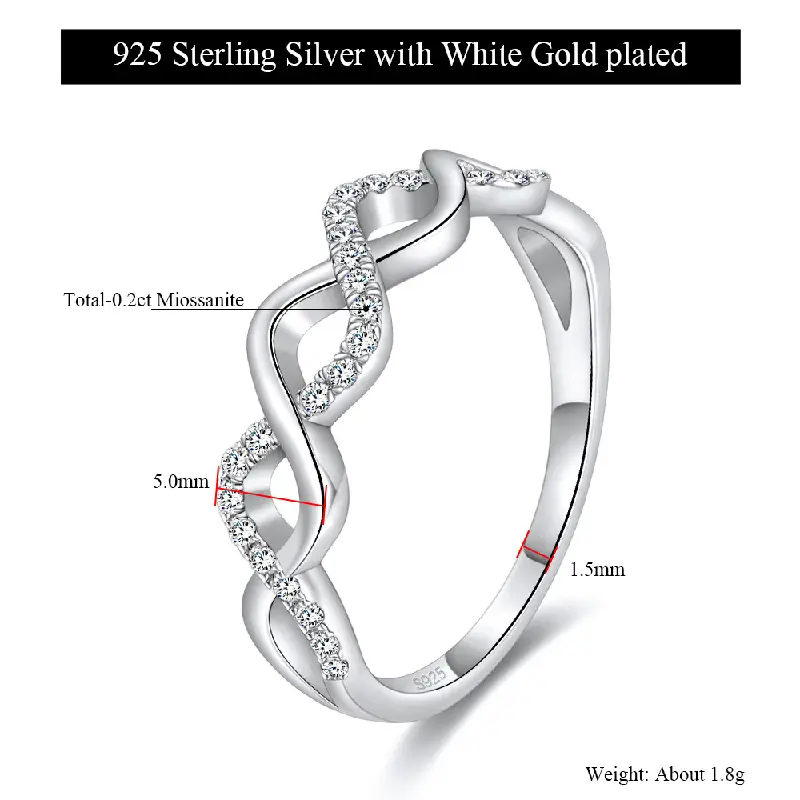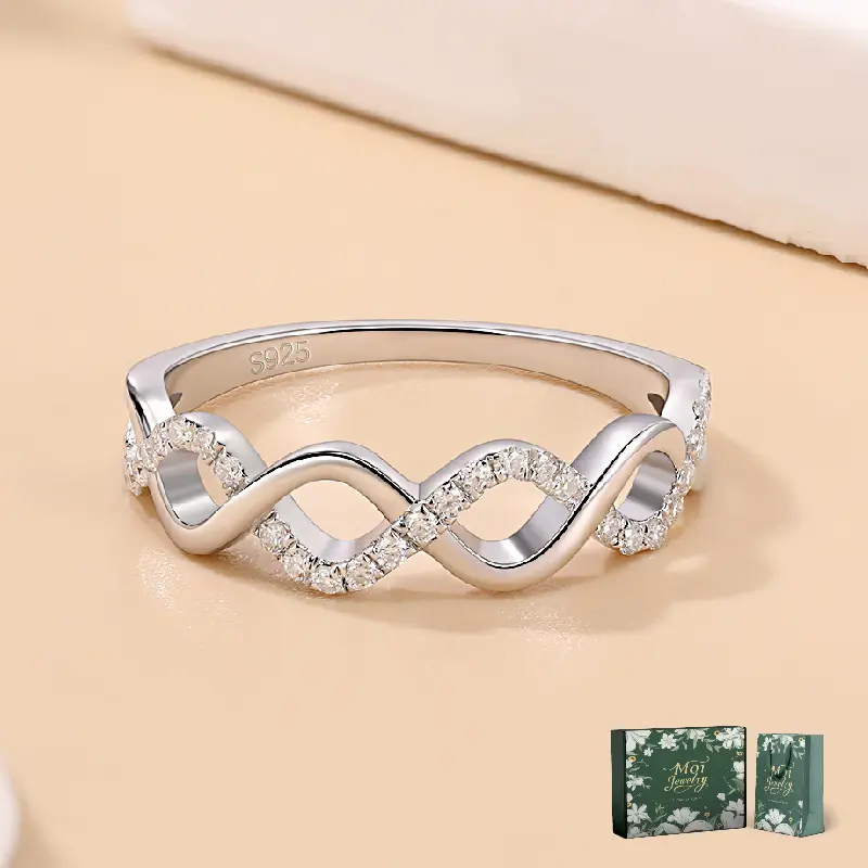 Moi Mart Twist Design Synthetic Moissanite Ring – Sleek unlimited stack band S925 Sterling Silver Jewelry for Women, Perfect Gift and everyday wear