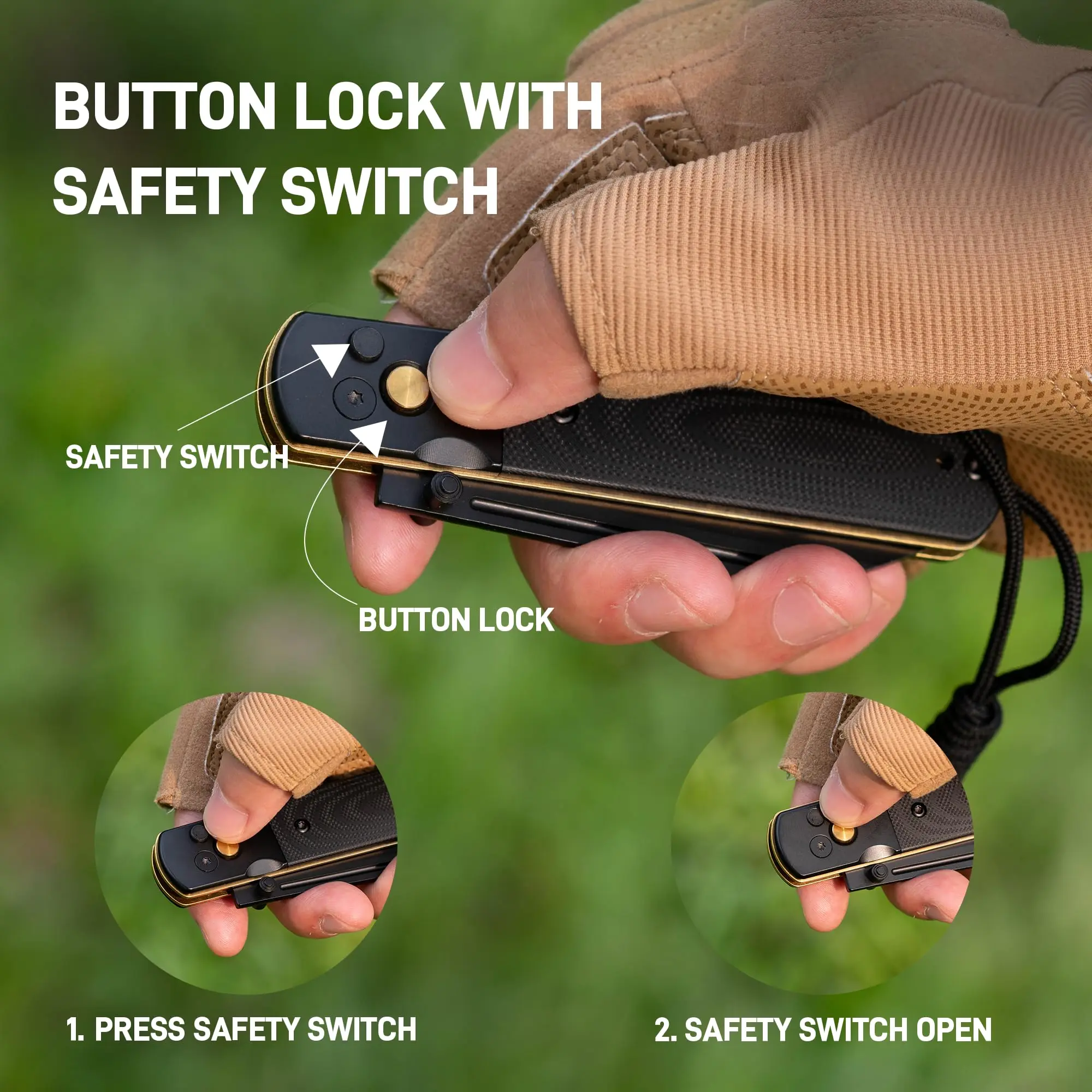 ·Ergonomic One-Handed Design: The knife is designed for comfortable one-handed operation, offering effortless control with safety. The Button Lock allows smooth handling, and the Safety Switch adds reassurance during use, ideal for various tasks