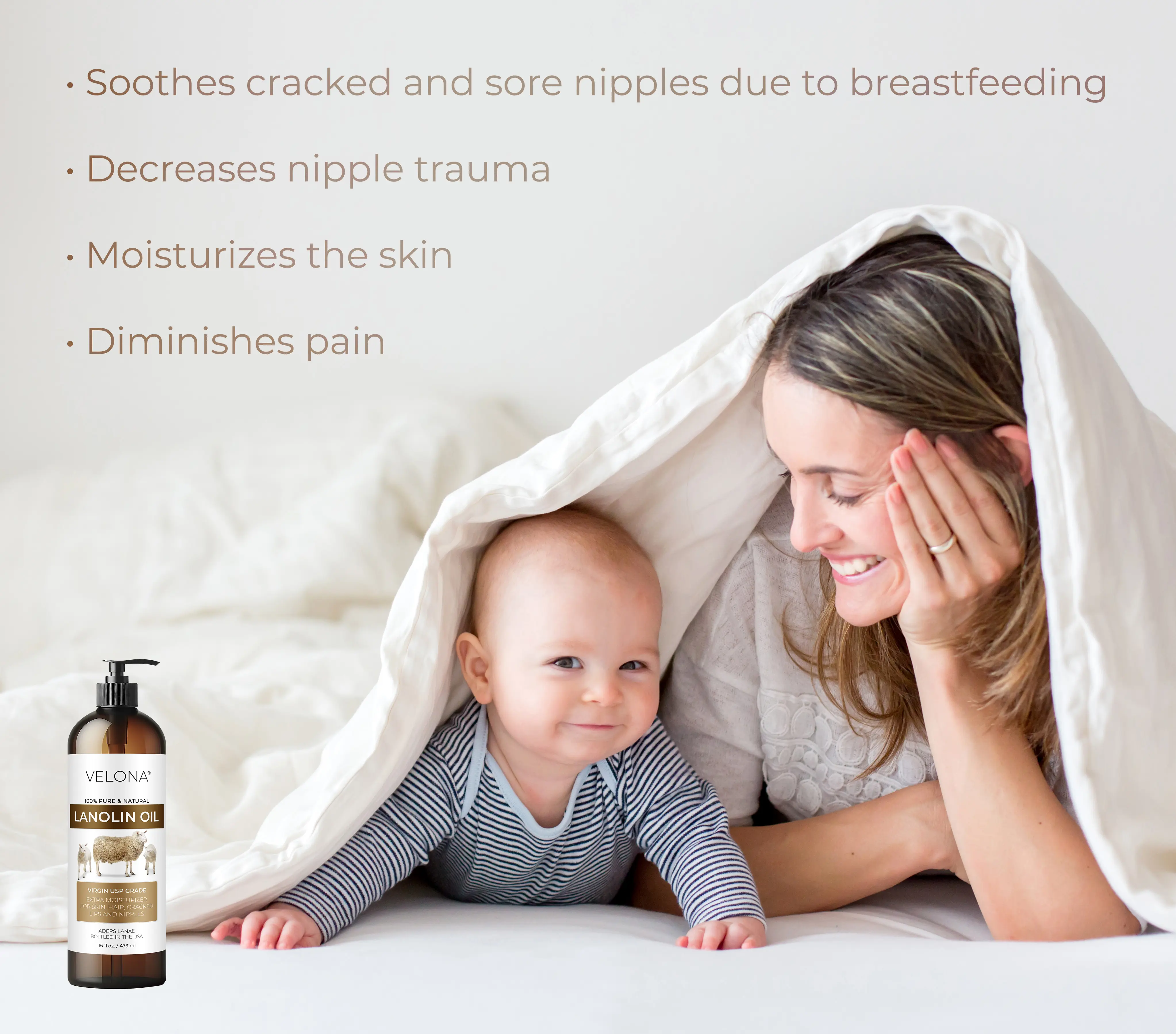 ·SOOTHE CRACKED AND SORE NIPPLES DUE TO BREASTFEEDING: Once applied on the nipples, lanolin oil moisturizes the skin and stops it from drying out. Also, it might help to decrease nipple trauma and diminishes pain.