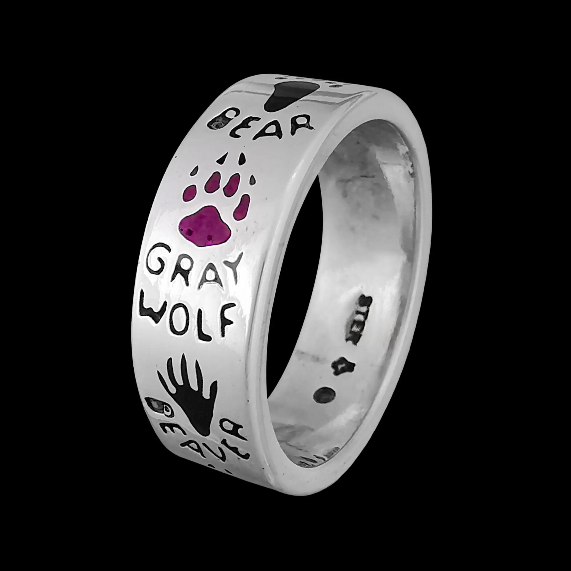 925 Sterling Silver Band Ring - Size 5 - Perfect for Outdoor Enthusiasts - Unique Animal Tracks Design - Raccoon, Mustang, Moose, Mountain Lion, Coyote, Beaver, Grey Wolf, and Bear - 1/4" Wide"