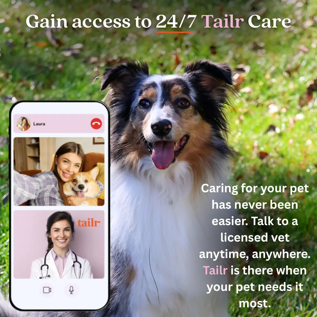 ·Access to Tailr's Telehealth: Sign up for access to our 24/7 vet care and training assistance.