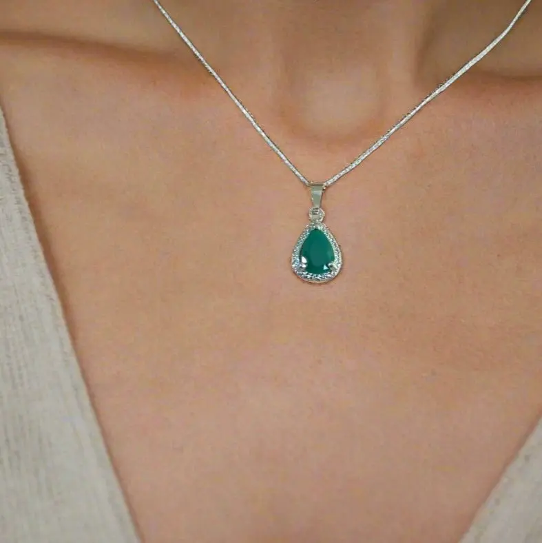 ·925 Sterling Silver Filled, Lab Emerald Pendant: The centerpiece of this necklace is a beautifully cut lab emerald, known for its deep, vibrant green hue and exceptional beauty The lab-grown emerald offers the same allure as a natural gem while promoting sustainability.
