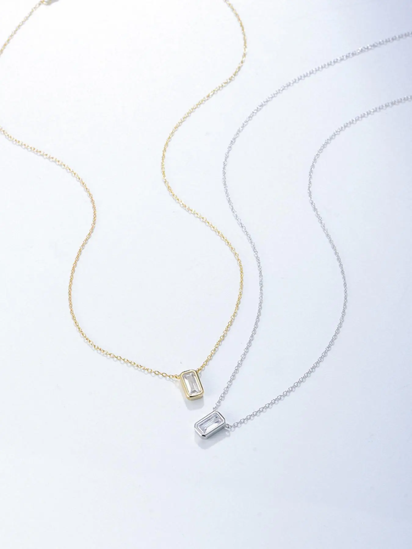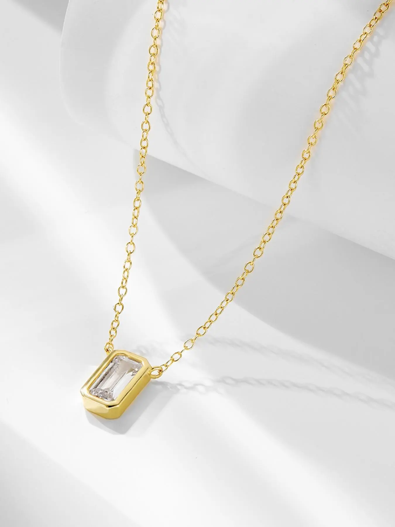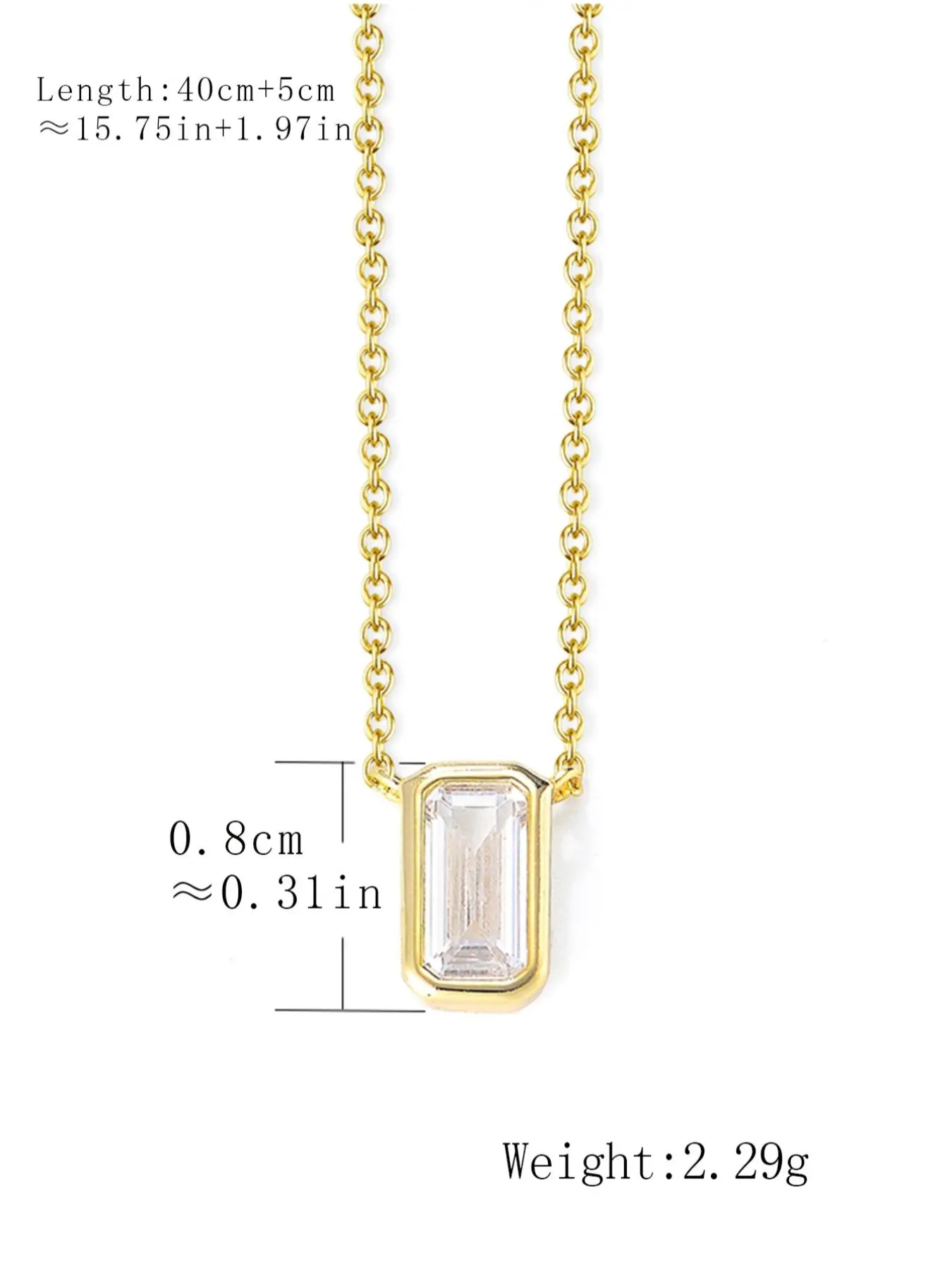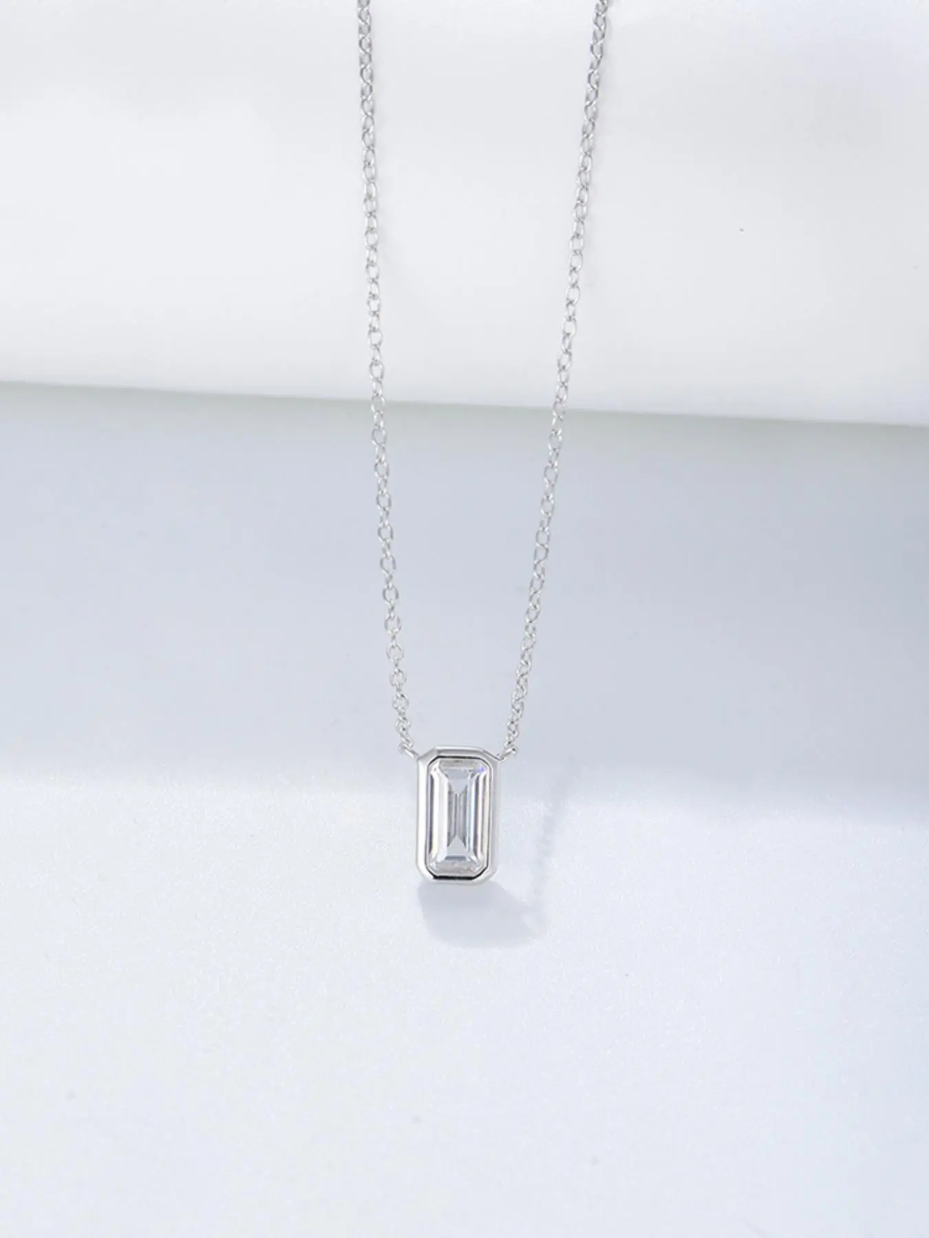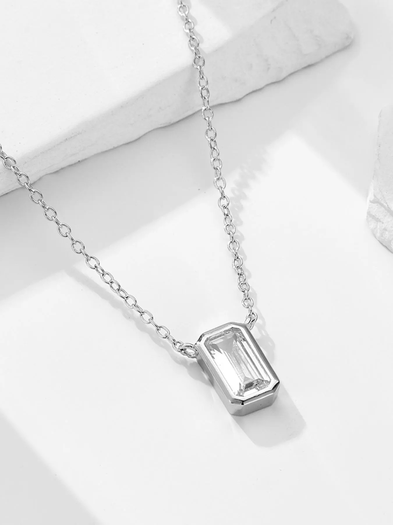 S925 Sterling Silver Rectangle Shaped Artificial Zircon Pendant Necklace, Fashion Jewelry for Party, Daily Clothing Decor, Trendy All-match & Exquisite Jewelry for Gift