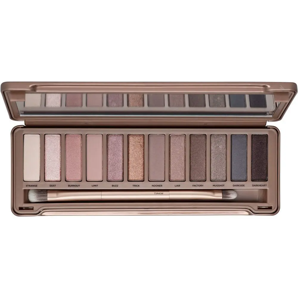 Naked3 Eyeshadow Palette features 12 rosyneutral shades with a variety of finishes. These soft shadows go well with any skin tone and blend easily for natural looks to smoky eyes. This palette includes the shades Strange (a pale neutral pink mattesatin),u00a0Dust (a pale metallic pink shimmer with iridescent microglitter), Burnout (a light pinkypeach satin), Limit (a light dusty rose matte), Buzz (a metallic rose shimmer with silver microglitter), Trick (a light metallic pinkycopper shimmer with tonal microsparkle), Nooner (a medium pinkybrown matte),u00a0Liar (a medium metallic mauve shimmer), Factory (a pinkybrown satin), Mugshot (a metallic taupe shimmer with slight pink shift), Darkside (a deep taupemauve satin), and Darkheart (a smoky black matte with rosy red microsparkle). Learn how this product was used to transform Lily James into Pamela Anderson in the Hulu series Pam & Tommy on our blog, and how to createu00a0a Fun and Flirty Makeup Look!