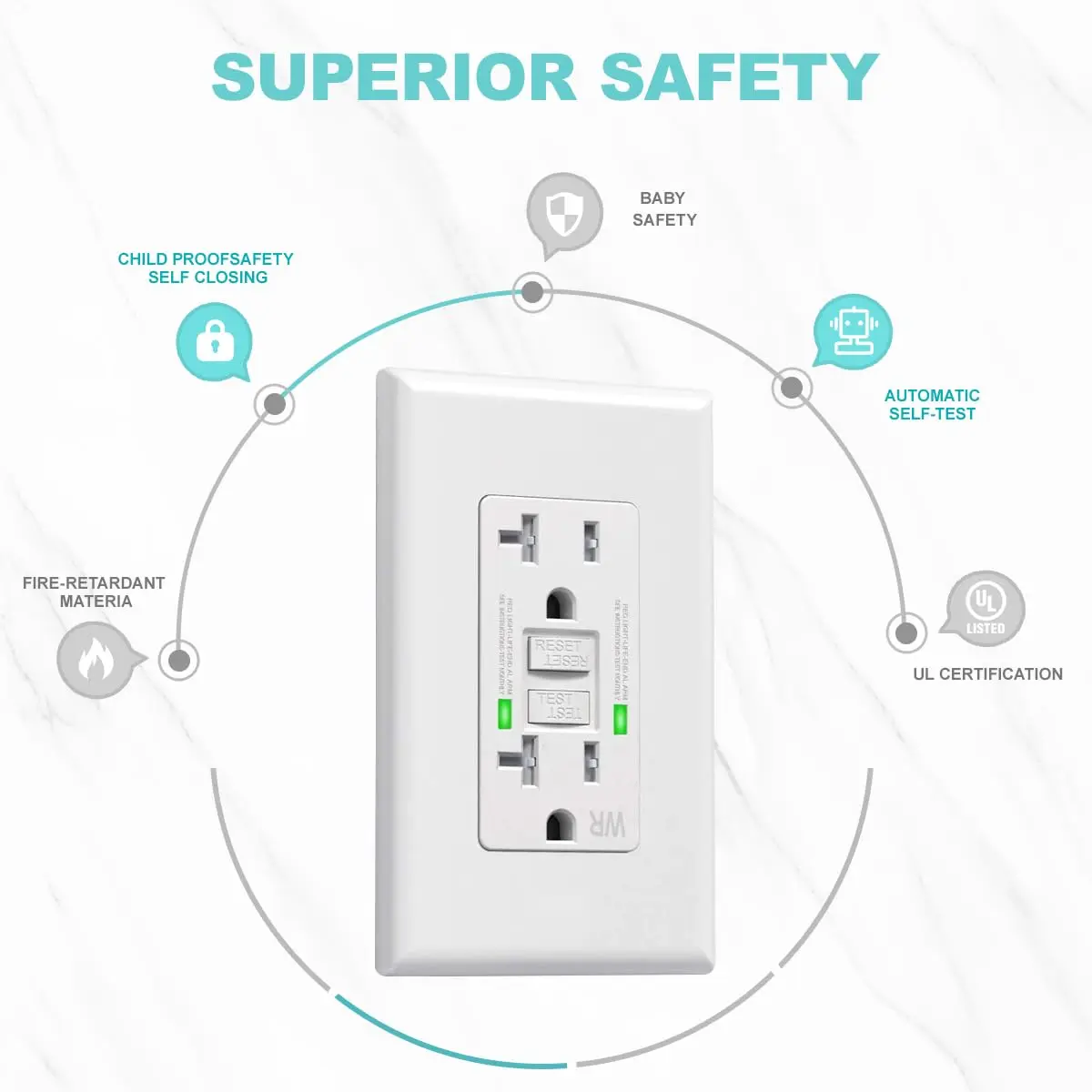 ·Self-Test Functionality: Features a self-test button for easy monitoring of outlet performance.