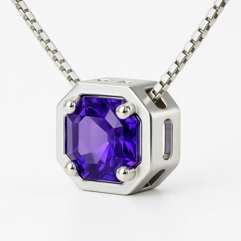 This elegant pendant showcases a 5x7mm octagonal-cut natural amethyst, celebrated for its deep violet hue and geometric precision. The clean, symmetrical facets of the gemstone maximize brilliance, creating a vibrant play of light with every movement. Its octagonal shape exudes timeless sophistication, making it a distinctive centerpiece for those who appreciate refined design.