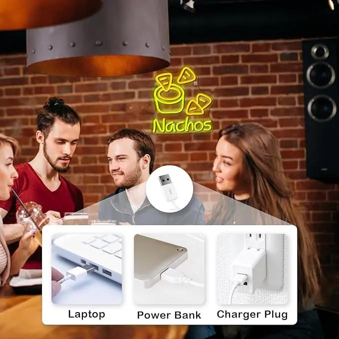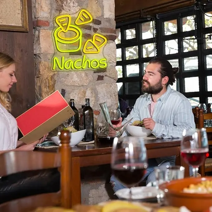 ·Irresistible Foodie Decor: Bring the joy of snacking to life with this vibrant neon sign featuring a delicious bowl of melted cheese and tempting tortilla chips, all crowned with the word NACHOS.