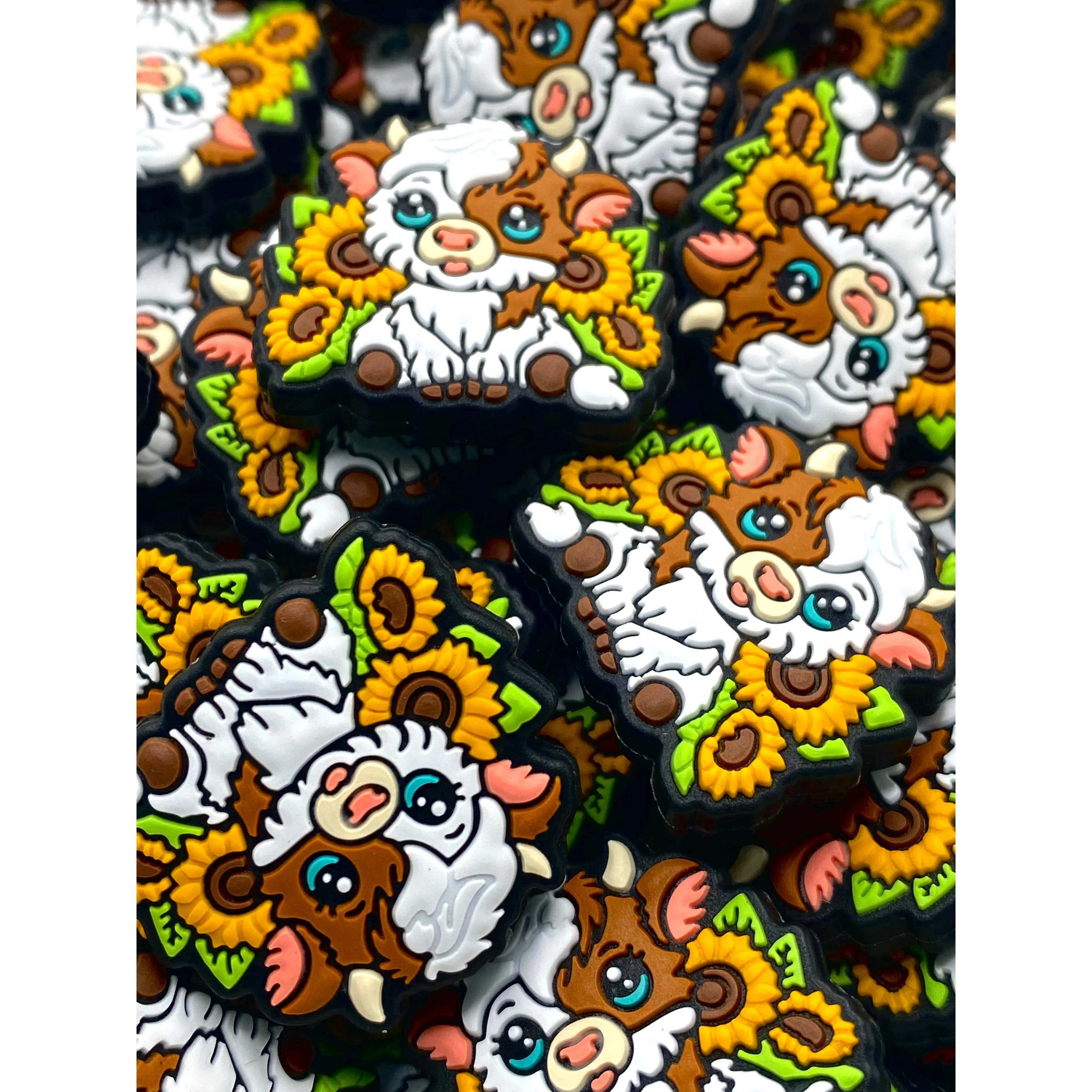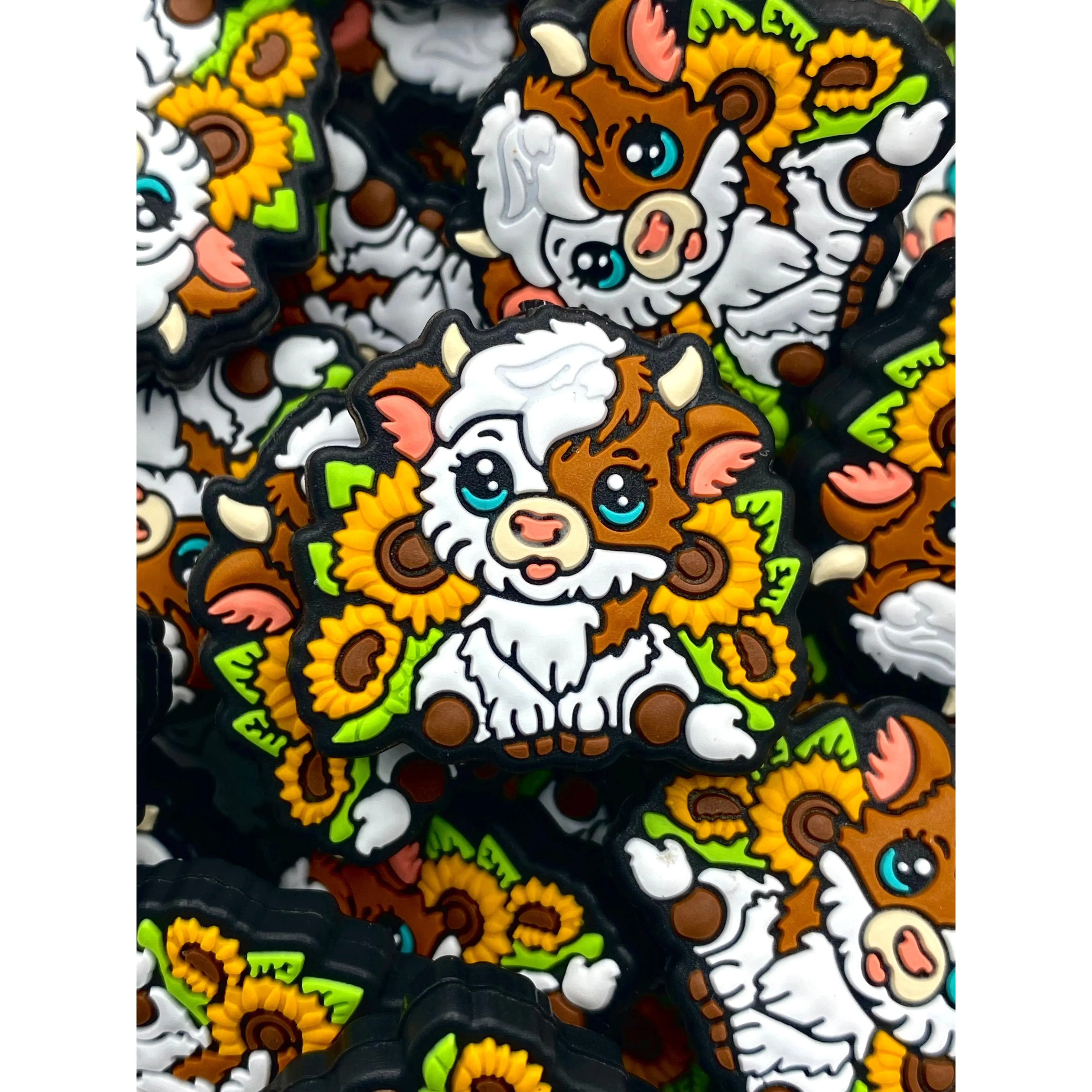 colorful beads, funny beads, cute beads, beadable pens, diy, craft, craft ideas, craft supplies, sunflower beads, sun beads, sunshine, flower beads, cow beads, western beads, calf beads, approximately 1" inch, 1oz ounce