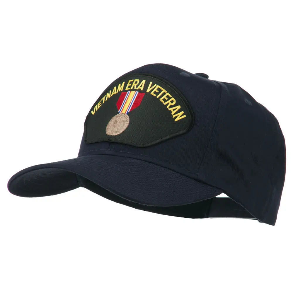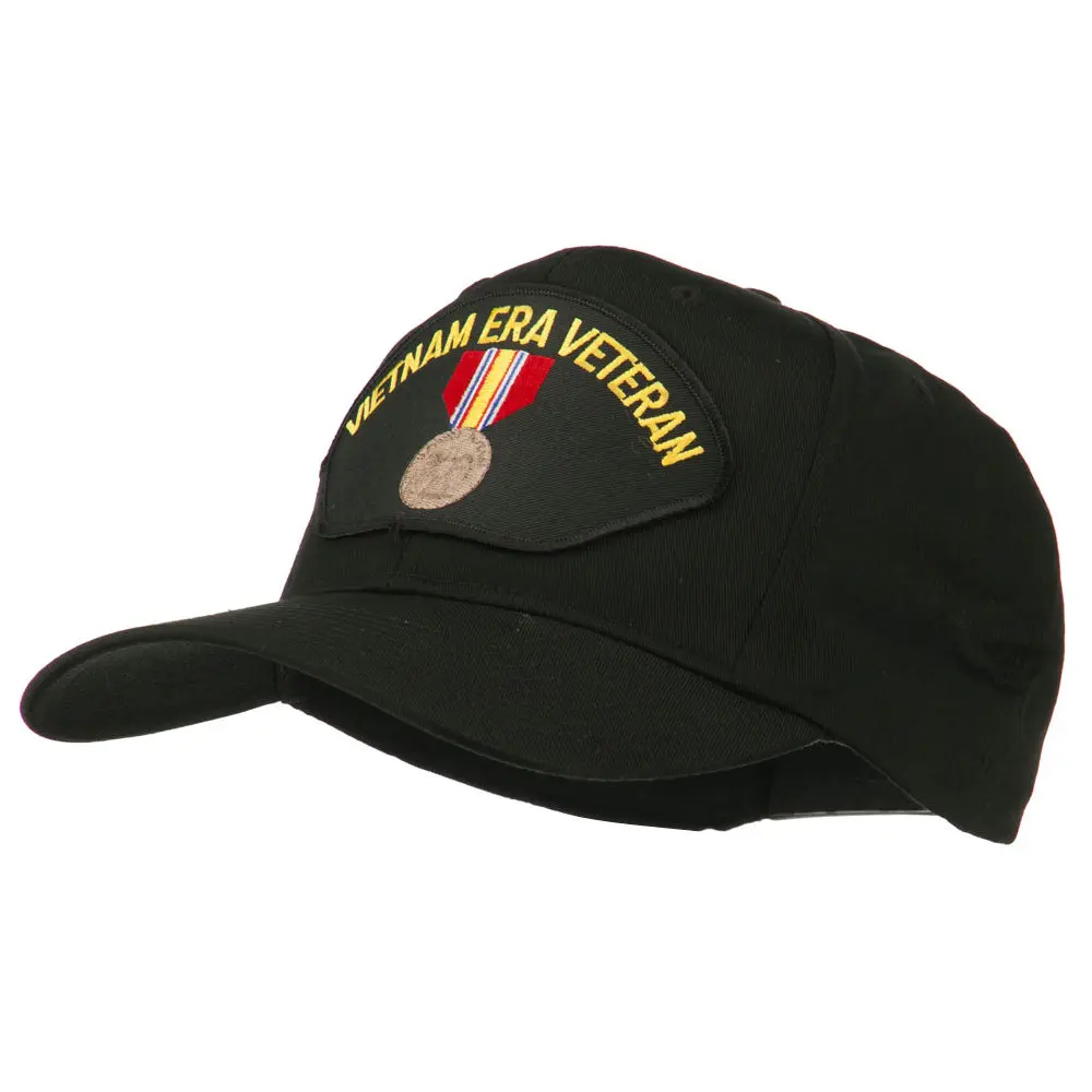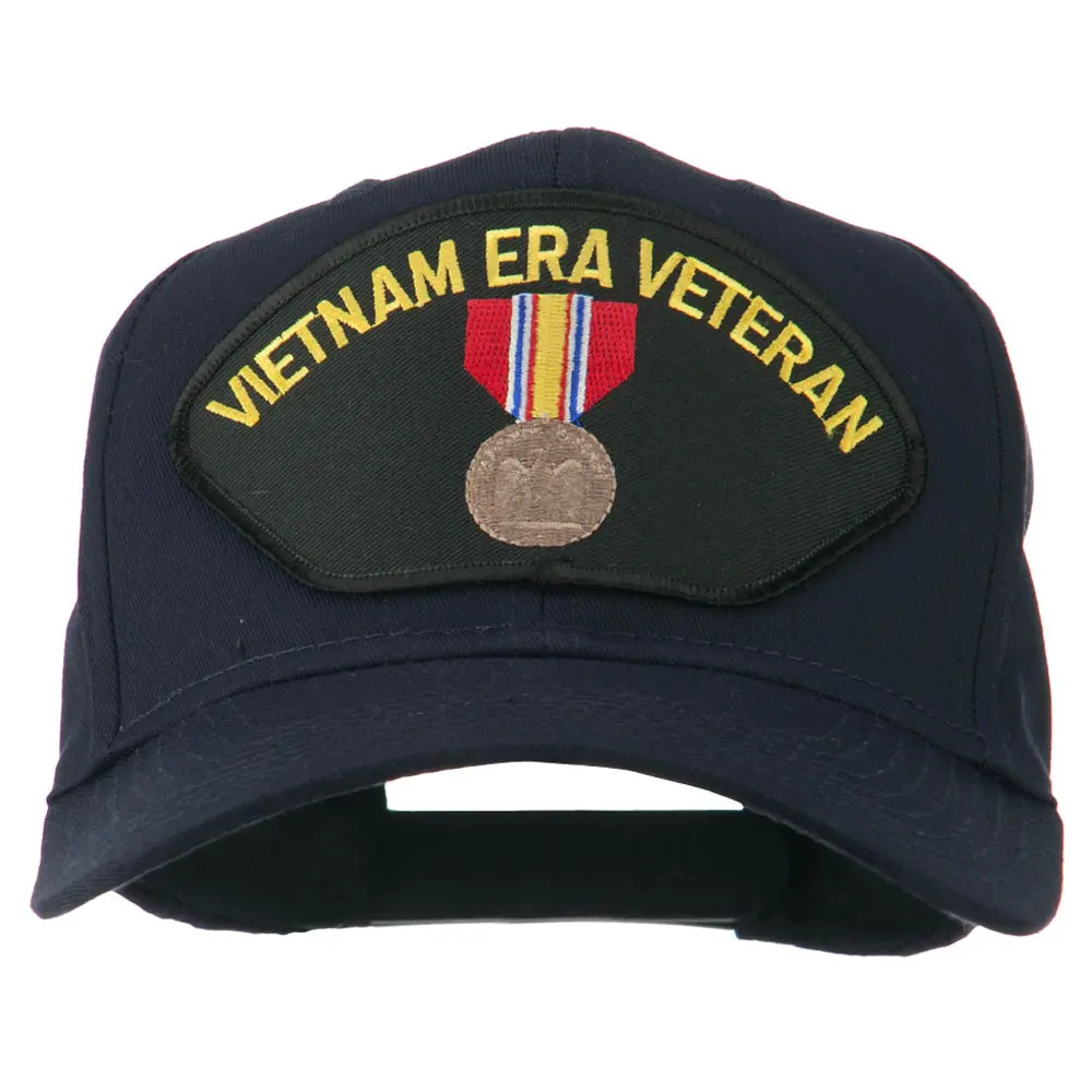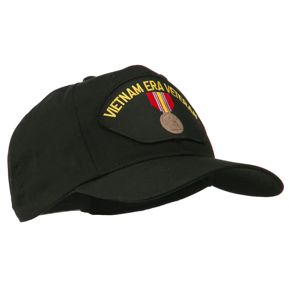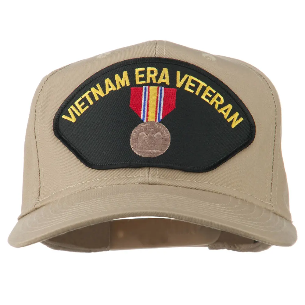 , Embroidered patch of Vietnam Era Veteran badge on the front crown.