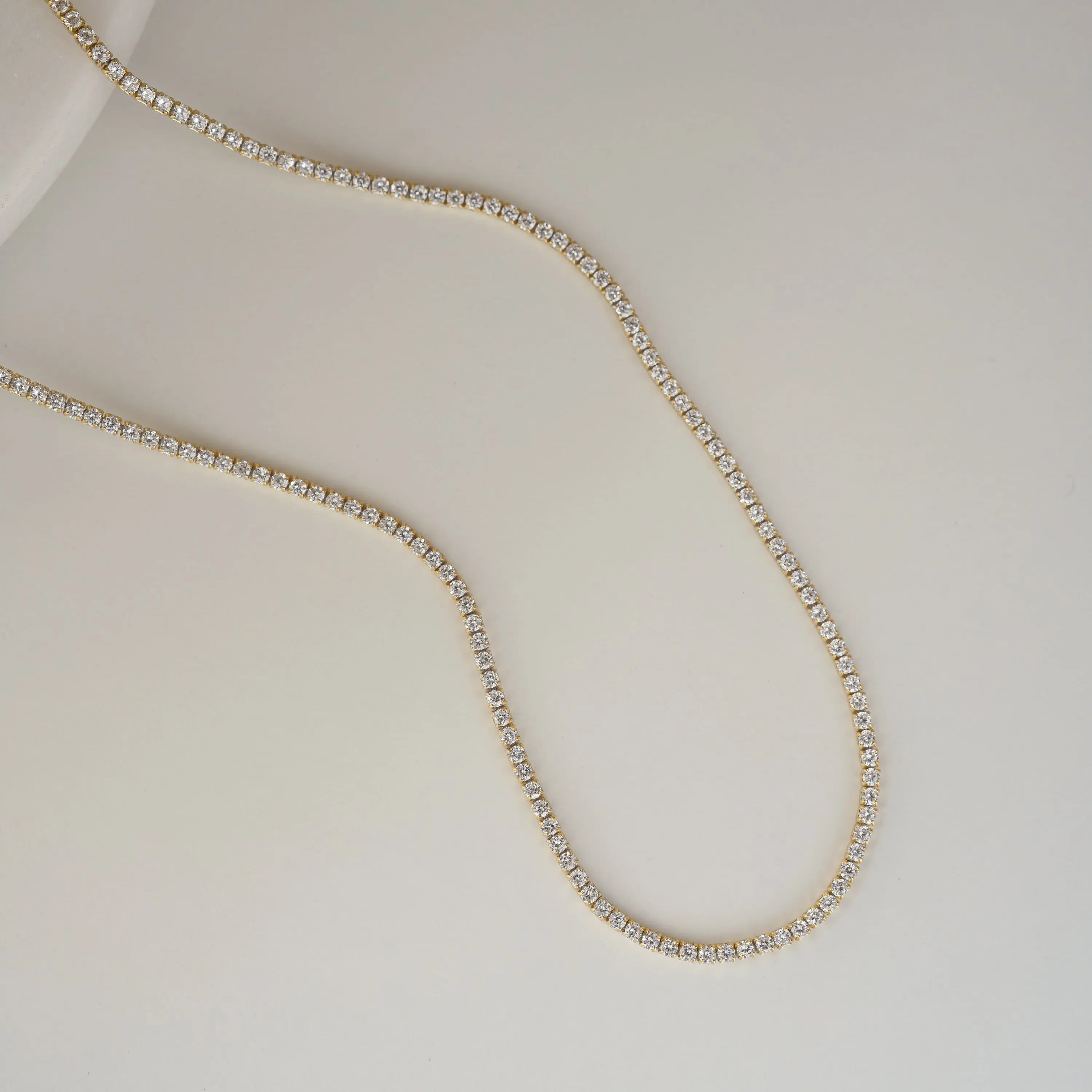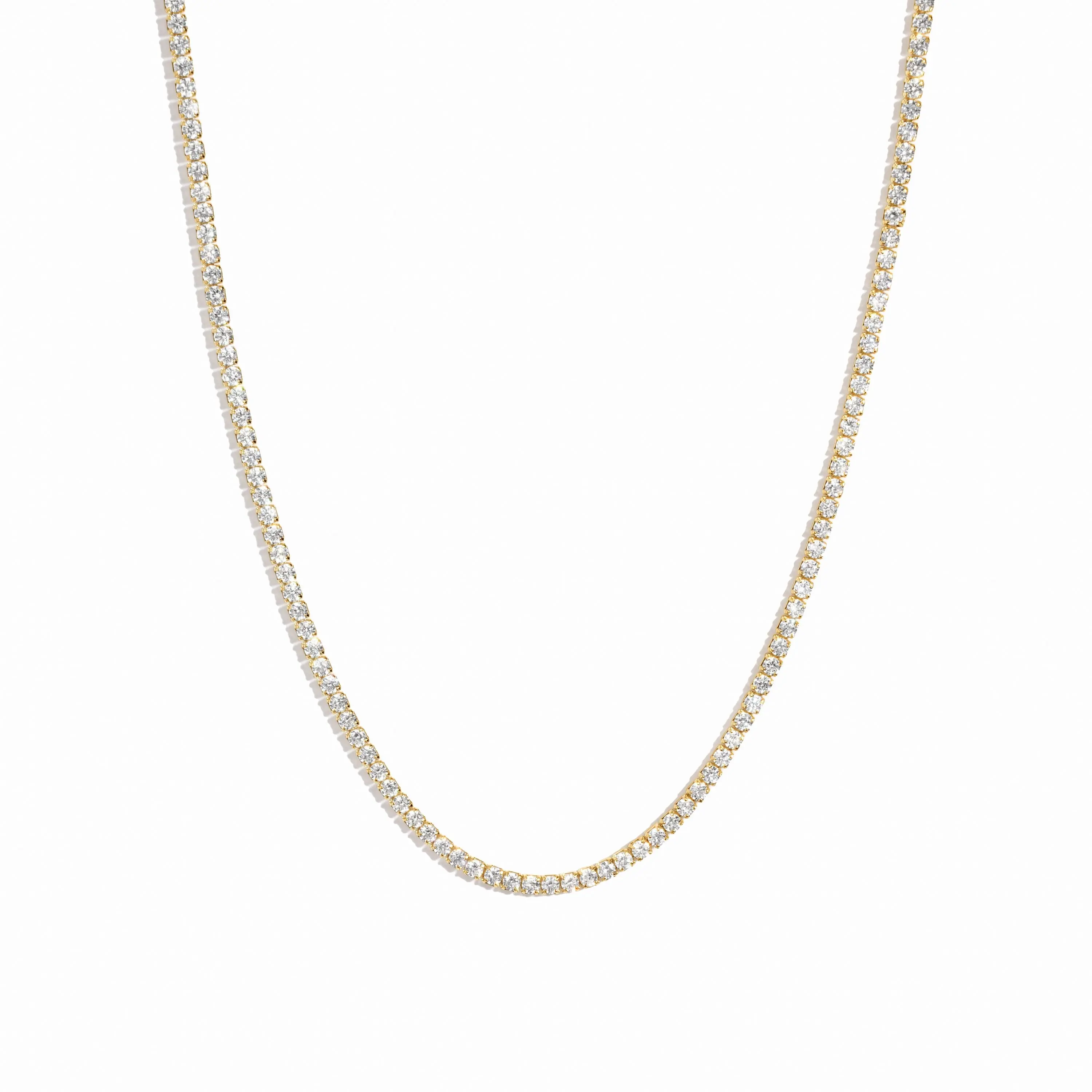 Sami Jewels 2mm Tennis Necklace for Women, 925 Sterling Silver Plated with 14k Gold, 12" + 3" Ext or 15" + 3" Extension Chain, Lobster Clasp Closure, Hypoallergenic and Nickel-free, Ideal for Everyday Wear