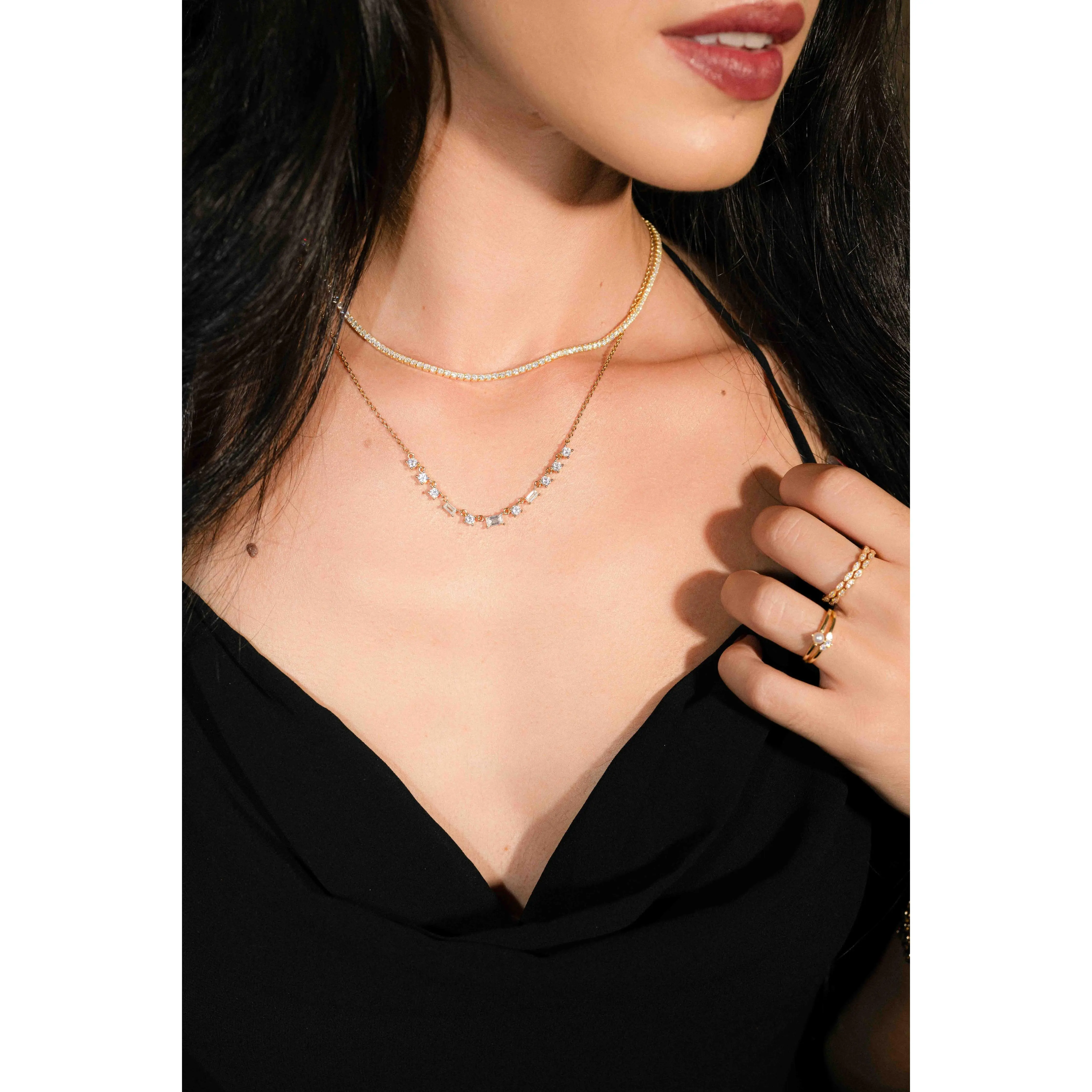 Dainty tennis necklace that is chic and minimalist. It's great casual or formal, as a gift or worn for special events like weddings, prom, parties, etc. it can be dressed up or down, stacked or on its own! It is the ultimate accessory at the moment. Truly a must-have in every collection!