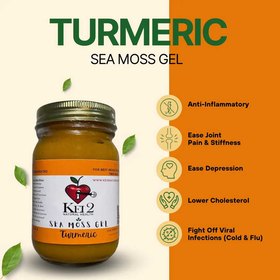 Reduce inflammation and support overall health with Turmeric Sea Moss Gel, a golden blend of nutrients for your whole body.This blend combines sea moss and turmeric, a vibrant spice known for its powerful anti-inflammatory and antioxidant properties. Turmeric, a relative of ginger, comes from the rhizome (root) of a native Asian plant. For centuries, traditional medicine has relied on turmeric, especially in Ayurvedic and Chinese healing practices. Turmeric’s active compound, curcumin, is widely recognized for its health benefits. Curcumin helps combat inflammation, improve joint health, and support the immune system. Turmeric supports digestion and helps the body combat oxidative stress.