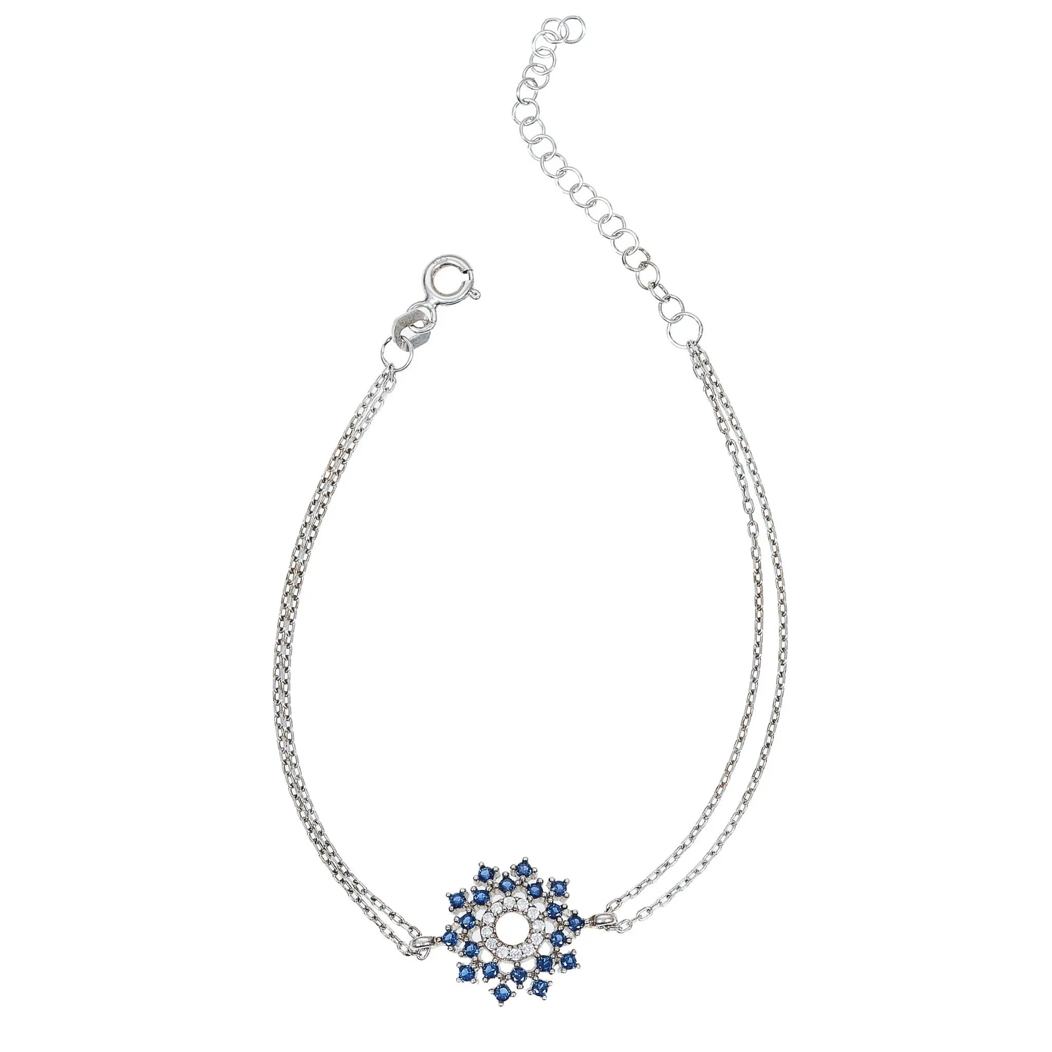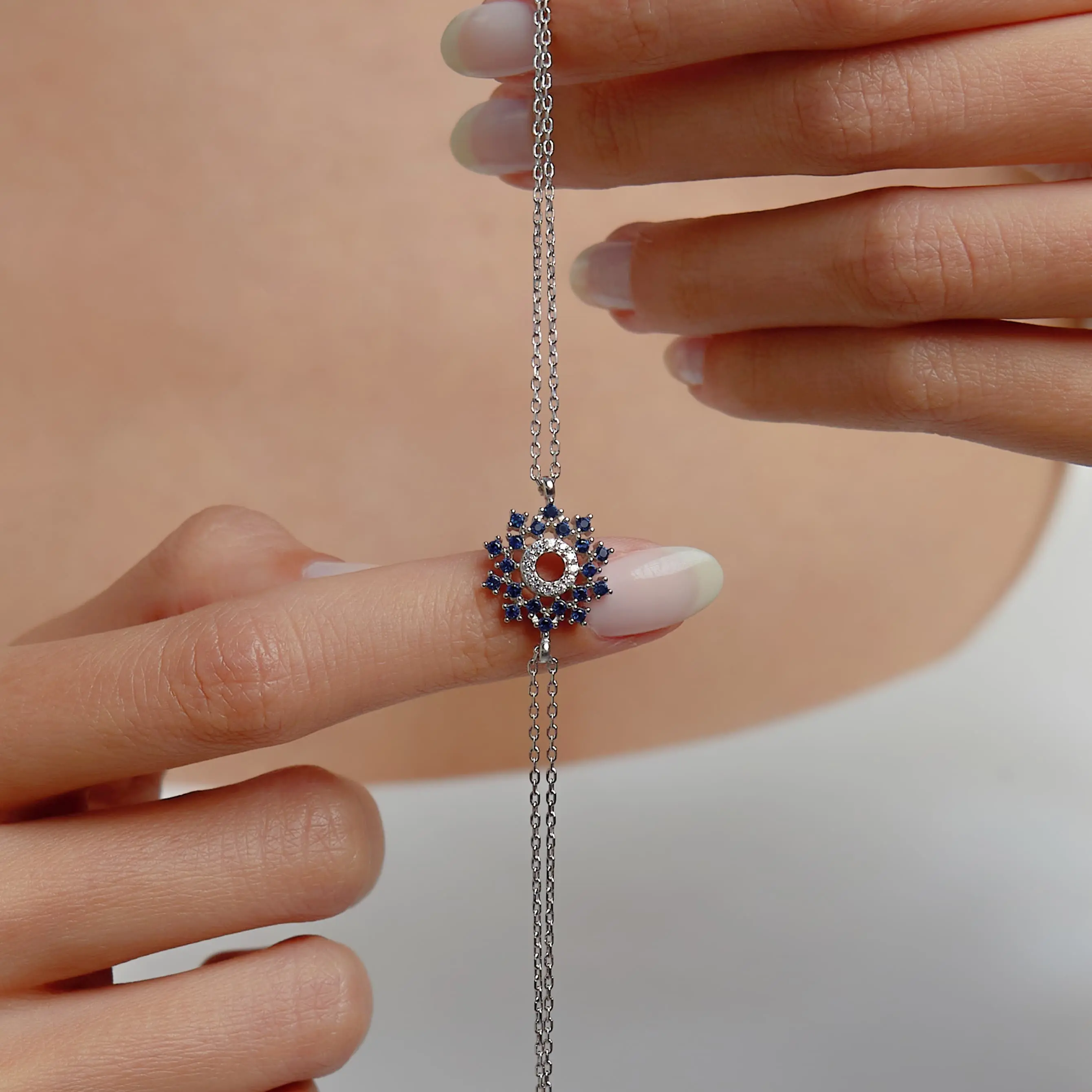 Motif: Bracelet inspired by fine craftsmanship, combining silver and gemstones for a modern, elegant design