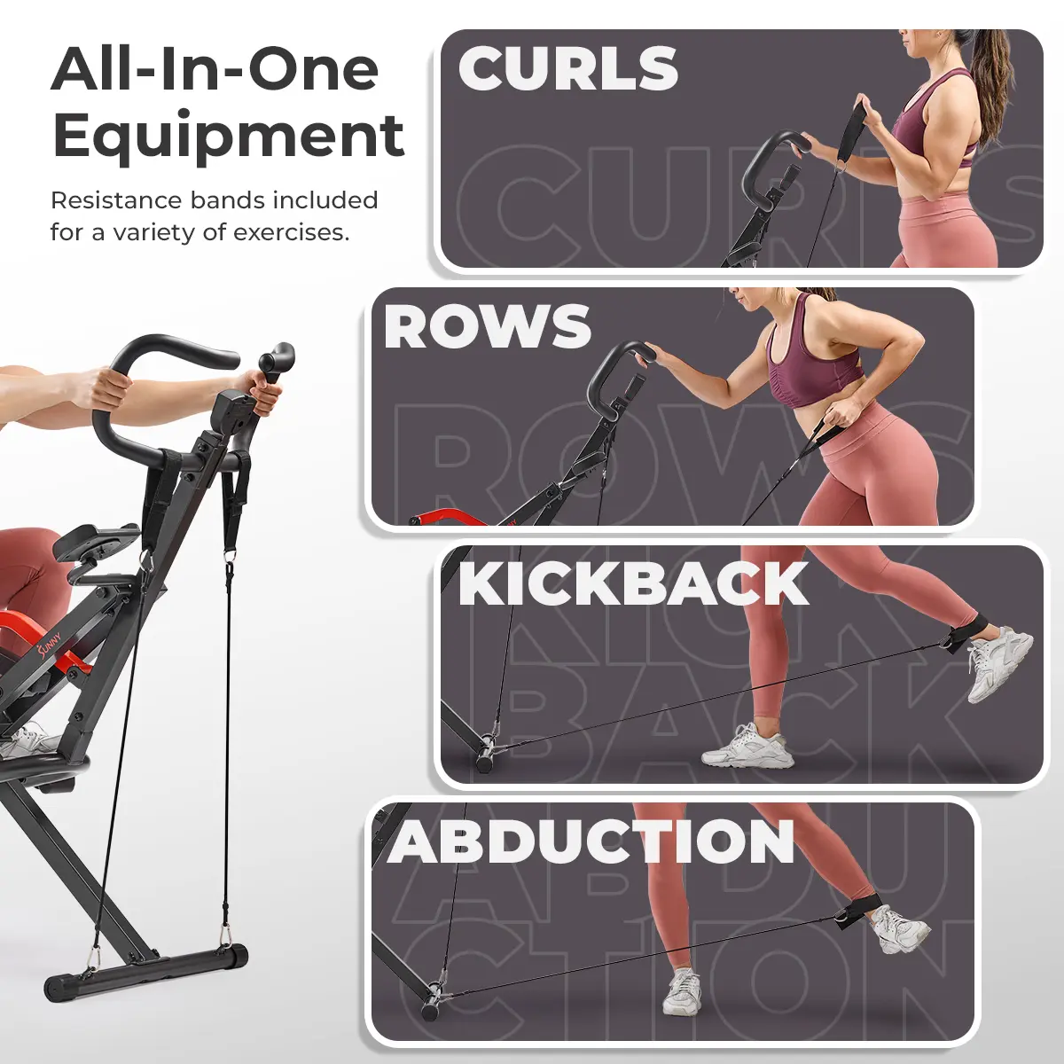 Transform your fitness routine with the Row-N-Ride Pro SMART, designed for an easy, effective workout that targets and tones your glutes, quads, and more. This innovative squat assist machine promotes compound movements, activating multiple muscle groups to burn calories more efficiently.